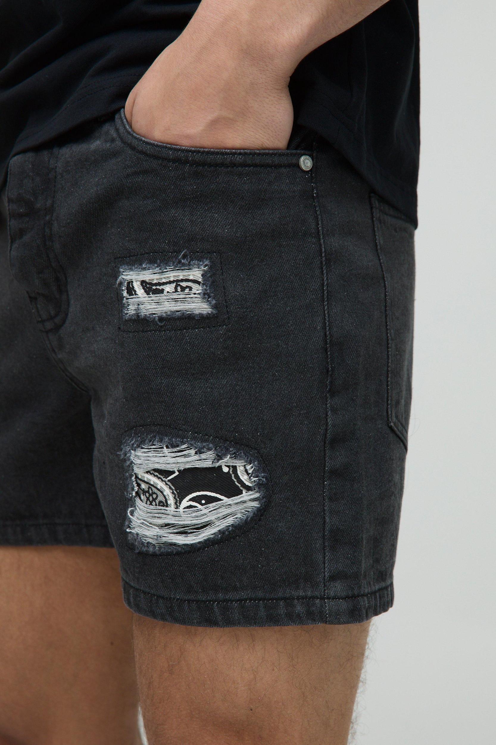 Slim Rigid Bandana Rip & Repair Paint Splatter Denim Shorts | boohooMAN USA