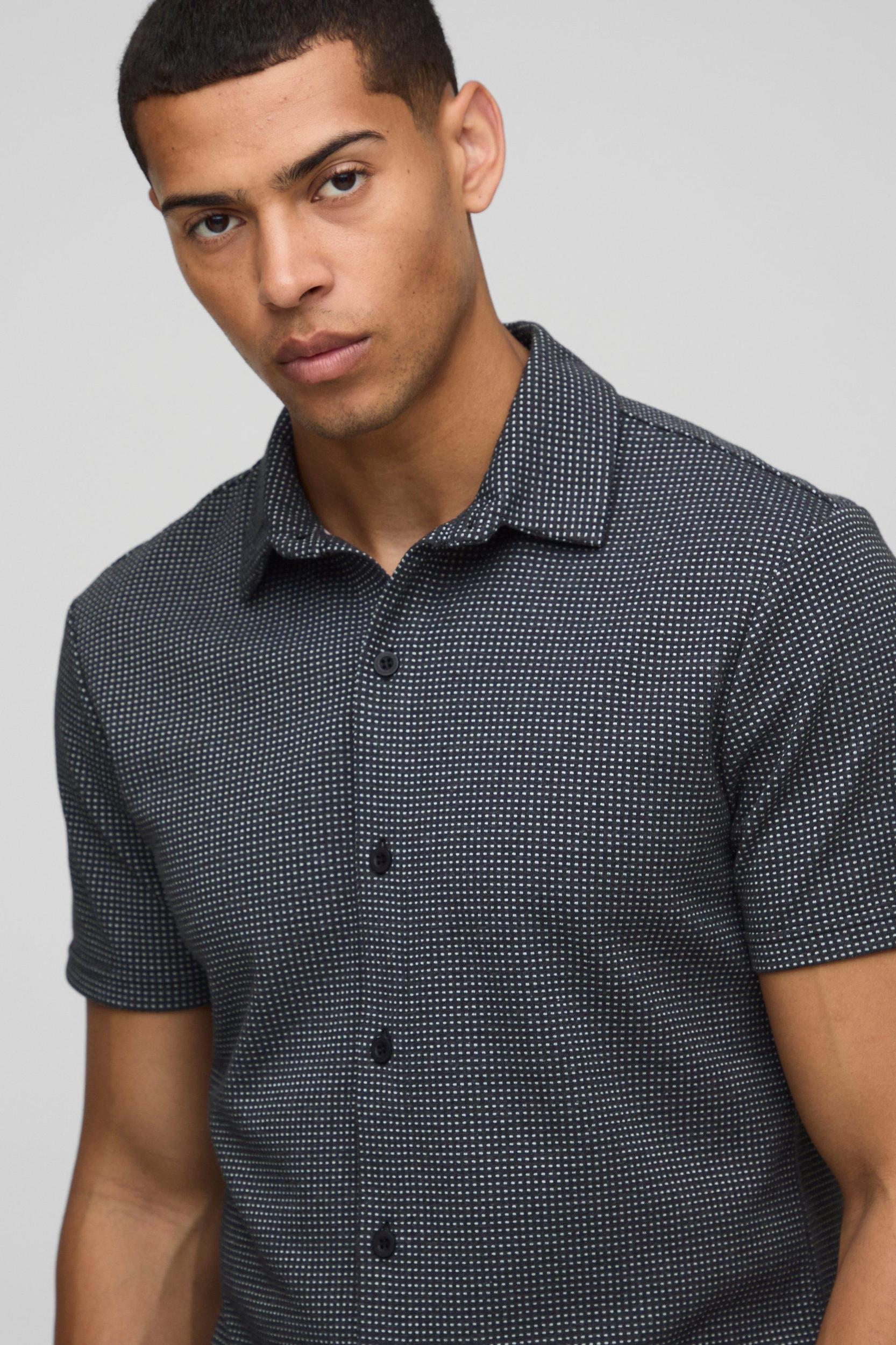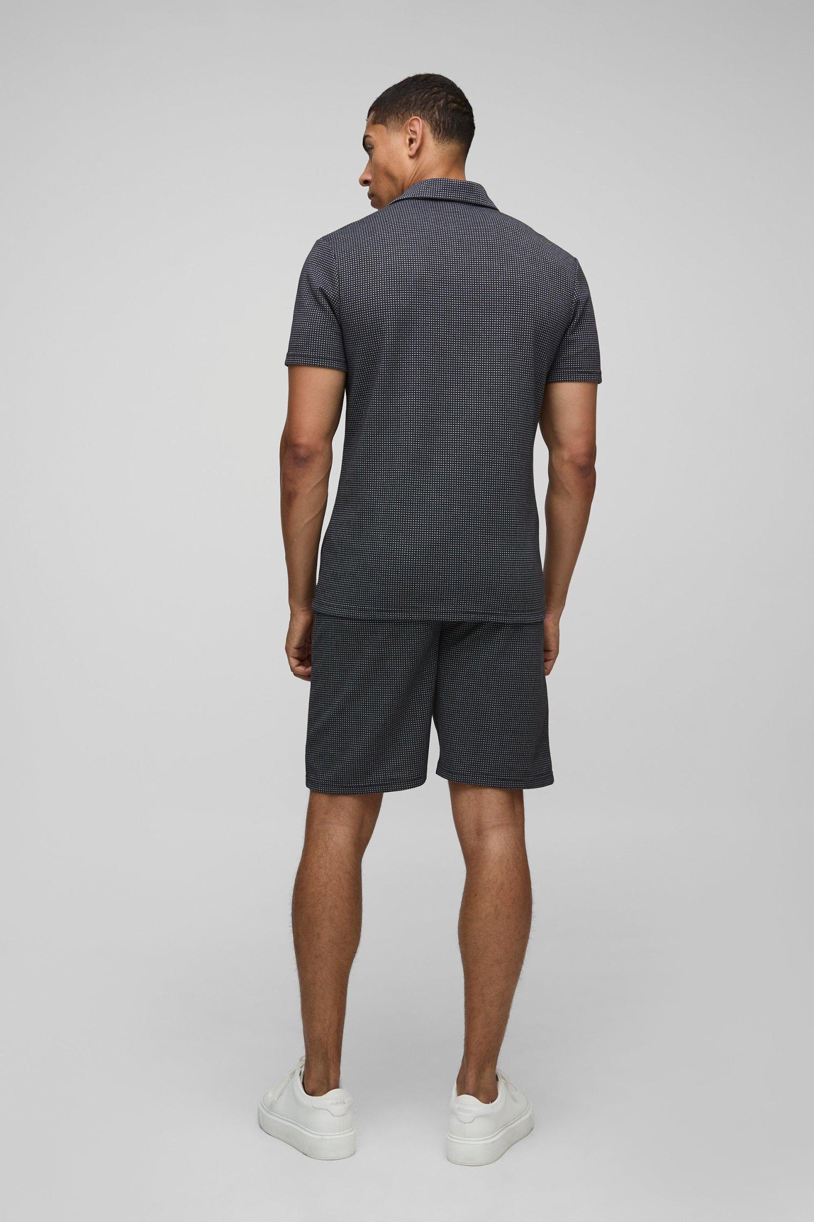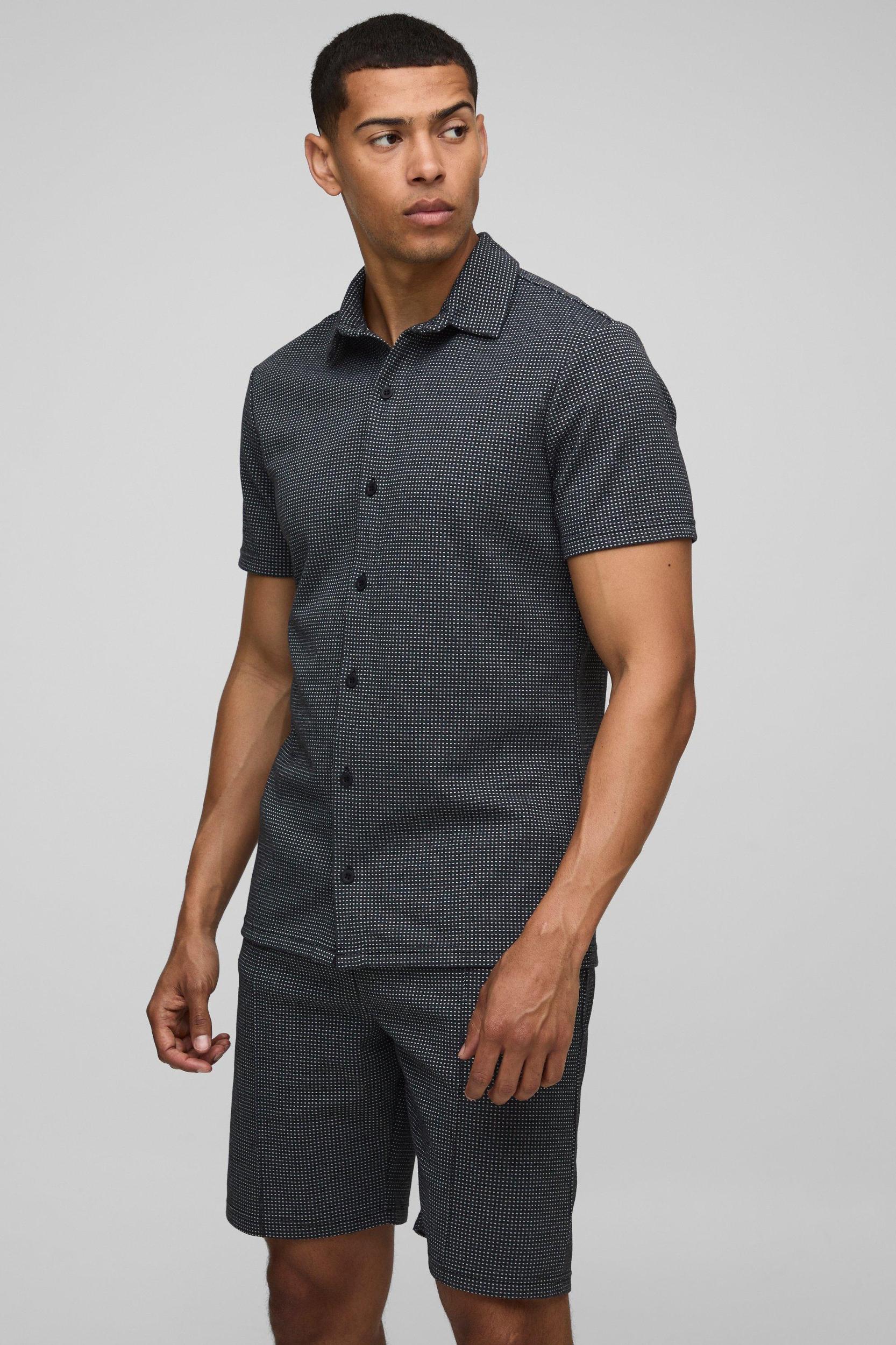 Slim Short Sleeve Collared Shirt & Comfort Pintuck Short | boohooMAN USA