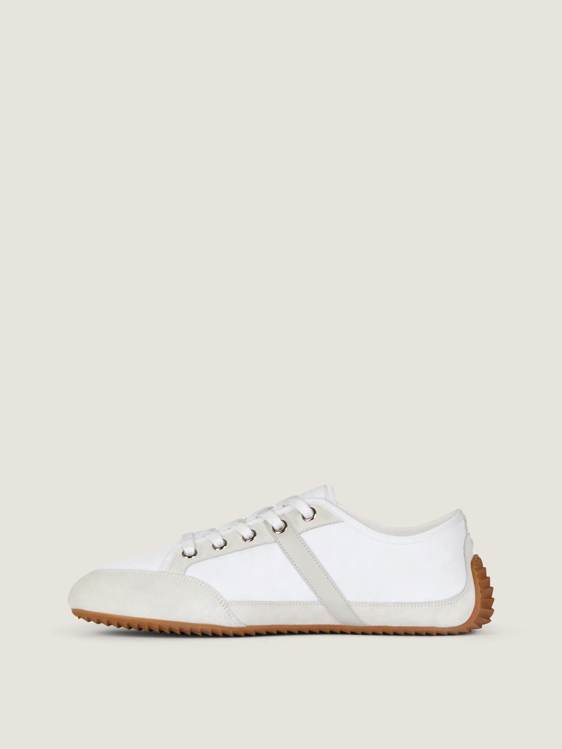 Low sneakers in nylon and suede leather. Slim line. Raised GIVENCHY signature on the side. GIVENCHY Paris signature printed on the leather insole. Slim and flat silhouette with almond toe shape. Thin rubber sole allowing great flexibility and comfort.