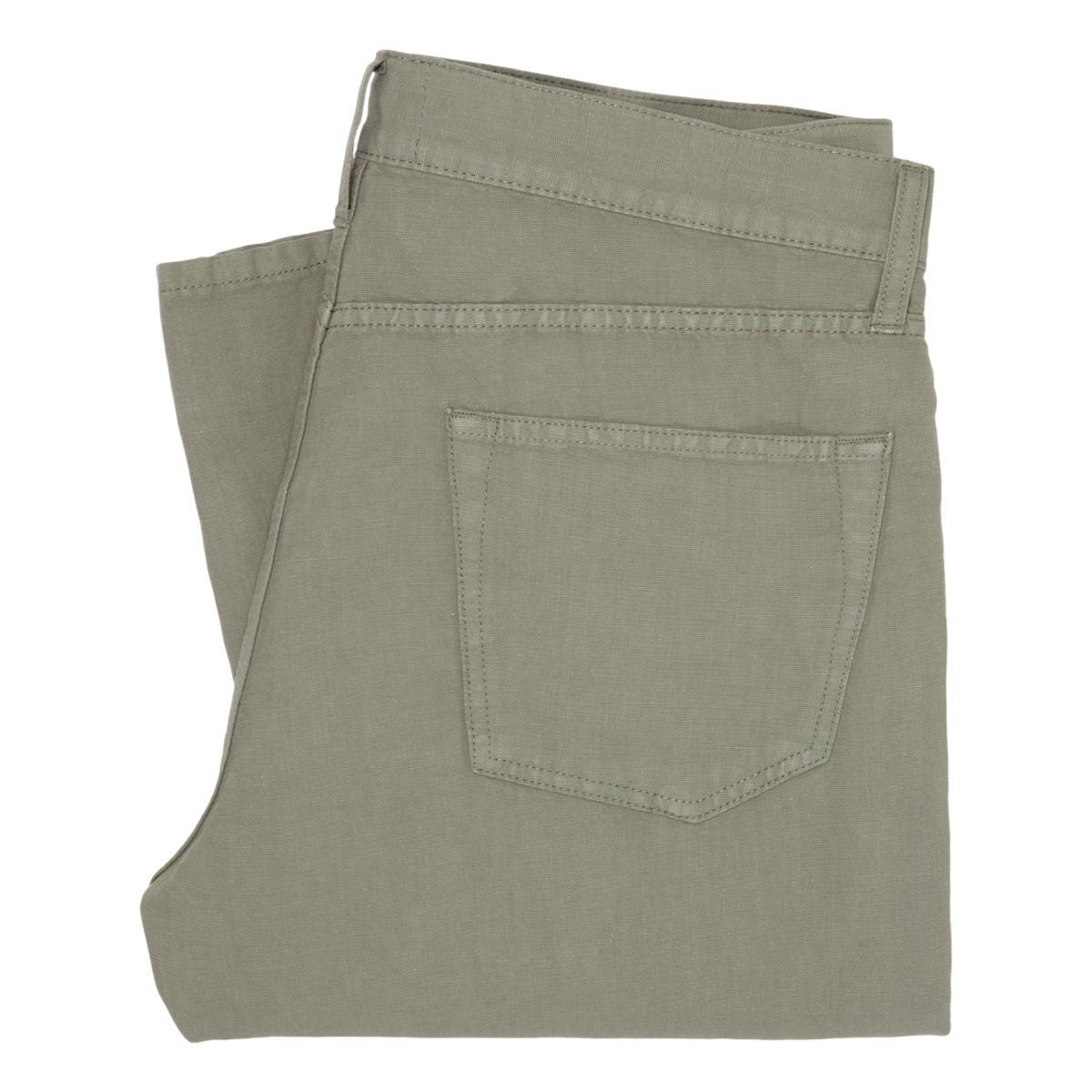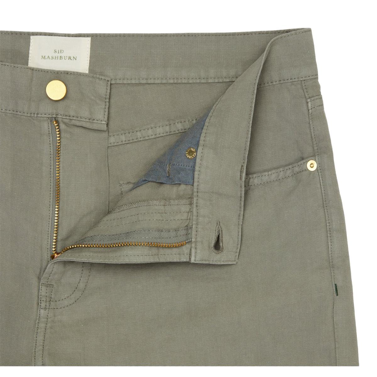 A classic pair of 5-pockets made up in a not-so-classic fabric: a half-and-half blend of cotton and canapa, which is a rare hemp yarn with the same kind of textured crunchiness as linen and flax. It's spun in Italy in small quantities and gets better the more you wear it… especially great blended with cotton. So while it might look like your standard earth-tone canvas, it's secretly special. Just like all of their 5-pockets, the shape of these riffs on two other longtime favorites: think Levi's 501s with more taper, APC New Standards with more room in the rise, and slimmer than both from the knee down. They're made with blue oxford pocketing, a zip fly, brass rivets, chain-stitched hems, and clean, unbranded back pockets. Italian canapa canvas 51% canapa/49% cotton oxford cloth pocketing brass rivets zip fly chainstitched hem size 33 has 15" leg opening made in China machine wash, hang dry, medium iron