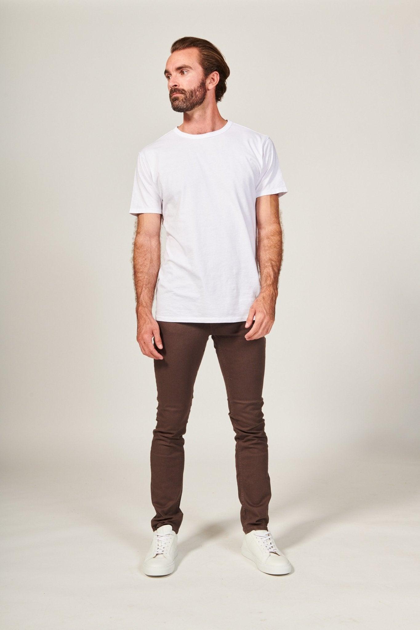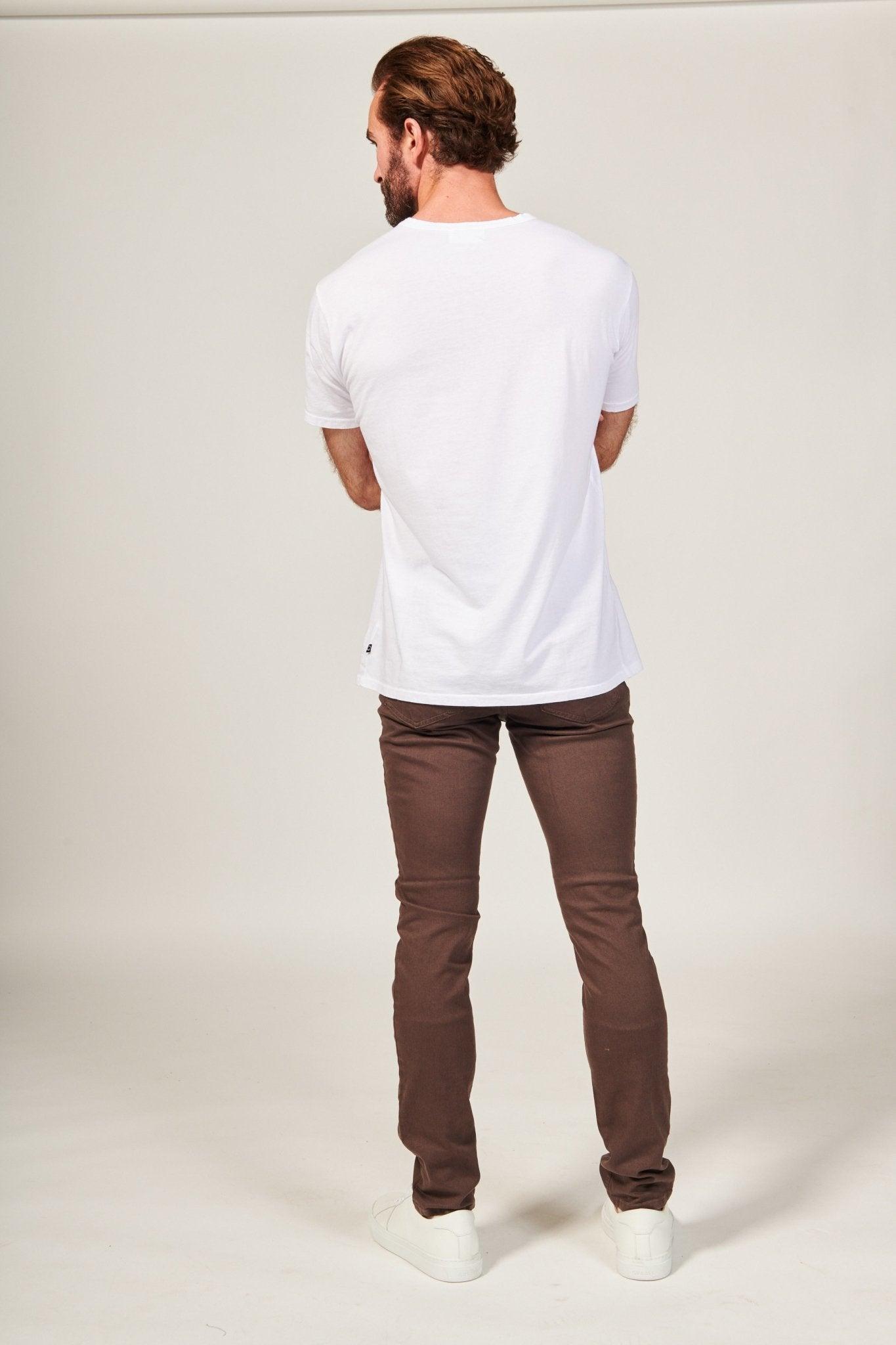 These Slim Taper jeans are made of 10oz stretch denim. Garment dyed with silicone wash for extra softness. For when our Slim Straight fit is not slim enough. By purchasing these jeans you are also contributing to keeping the local resources we use. ONE DIME AT A TIME. Model is 6'0" wearing size 30 Fit: Slim Taper. Regular rise, slim through the thigh with a tapered leg. 32" inseam Fabric: 10 oz 98% Cotton 2% Spandex, Garment Dyed with Silicone Wash, Pre-shrunk, Machine wash cold/tumble dry low Proudly Hand Made in Los Angeles, CA. USA.