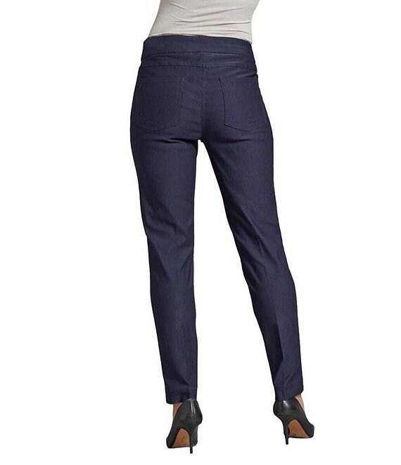From Slimsation® by Multiples, these pants feature:straight leg silhouettewide waistbandflat front flexible tummy control panel smooths and slims tummy, thighs and rearreduce tummy bulgedrop 1 size instantly look and feel 10lbs lighterFunctional L shaped front pocketsFunctional back patch pockets small side vents at the hemlinepull-on constructionapprox. 29" inseam; 13" leg opening; 9.75" front rise; 16" back riserayon/nylon/spandexmachine washImported.