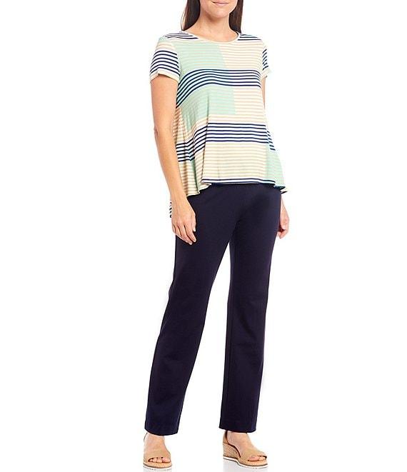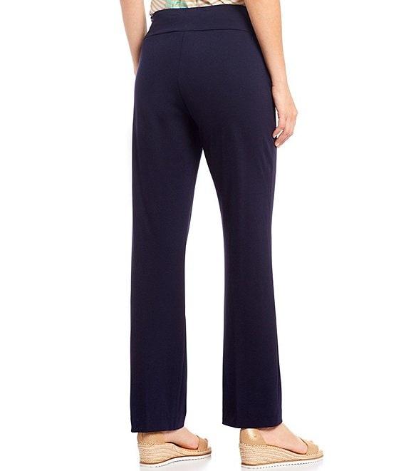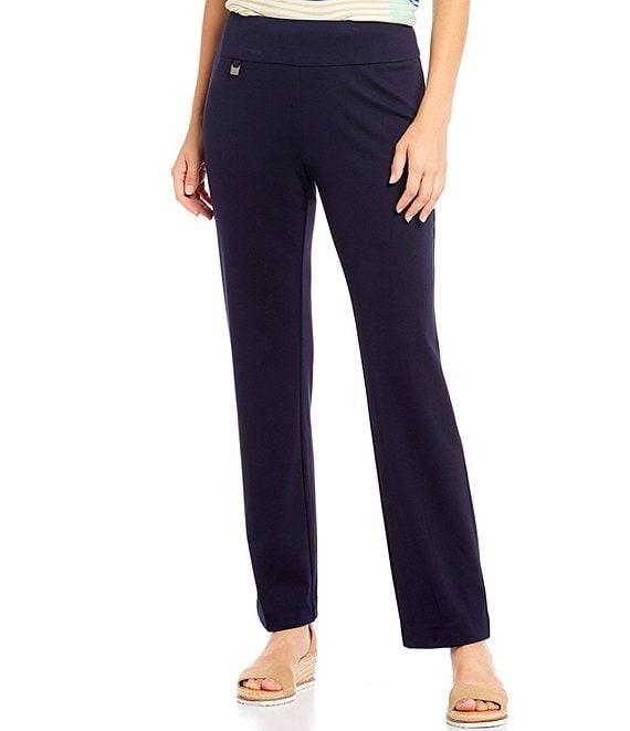 From Slimsation® by Multiples Petite, these pants feature: relaxed straight leg silhouette wide mid-rise elastic waistband tummy control panel logo tab at front wearer's right side flexible tummy control panel smooths and slims tummy, thighs and rear reduce tummy bulge drop 1 size instantly look and feel 10 lbs lighter straight hemline pull-on construction approx. 29"inseam, 16" leg opening approx. 9.625" front rise, 15.75" back rise rayon/nylon/spandex machine wash Imported.