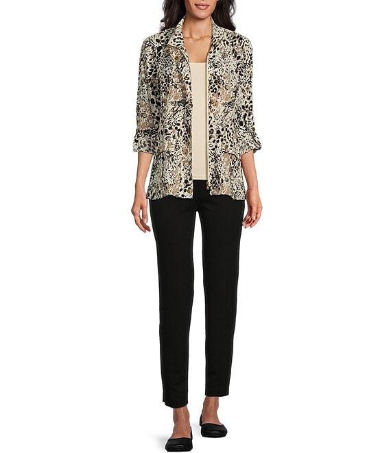 From Slimsation® by Multiples, these pants feature:Wide waistbandTapered leg with side ventsMid rise waistbandFlexible tummy control panel smooths and slims tummy, thighs and rearReduce tummy bulgeDrop 1 size instantlyLook and feel 10 lbs. lighterPull-on constructionApprox. 29" inseam; 13.25" leg opening; 10.125" front rise; 16.25" back riseRayon/nylon/spandexMachine washImported.