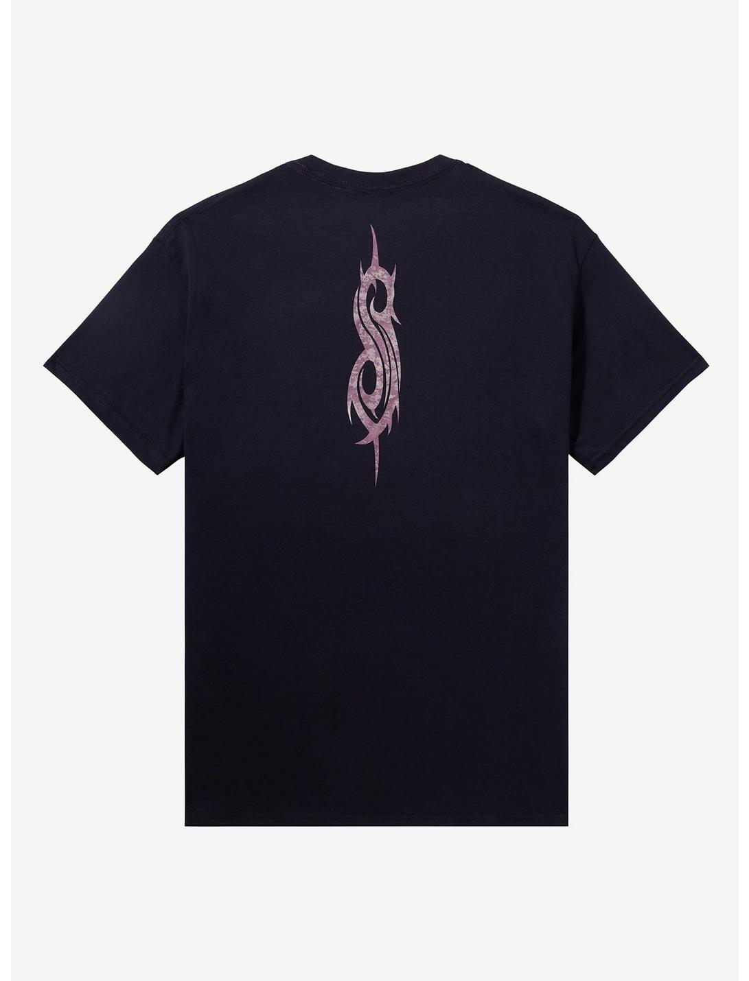 This two-sided Slipknot tee shows a pair of blurry masks with the nonagram layered on top of them and the band's logo above. The back shows the "S" symbol.100% cottonWash cold; dry lowImportedListed in men's/unisex sizes