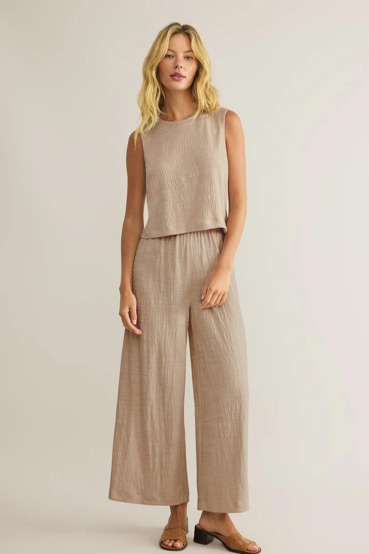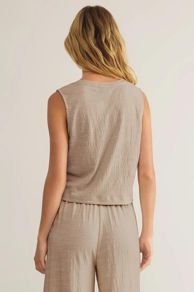 A laid-back essential with a textured twist, this sleeveless crewneck top hits at the waist and channels effortless cool. Its slub knit fabric and muscle tank style make it the perfect pairing for high-waisted denim or layered looks.