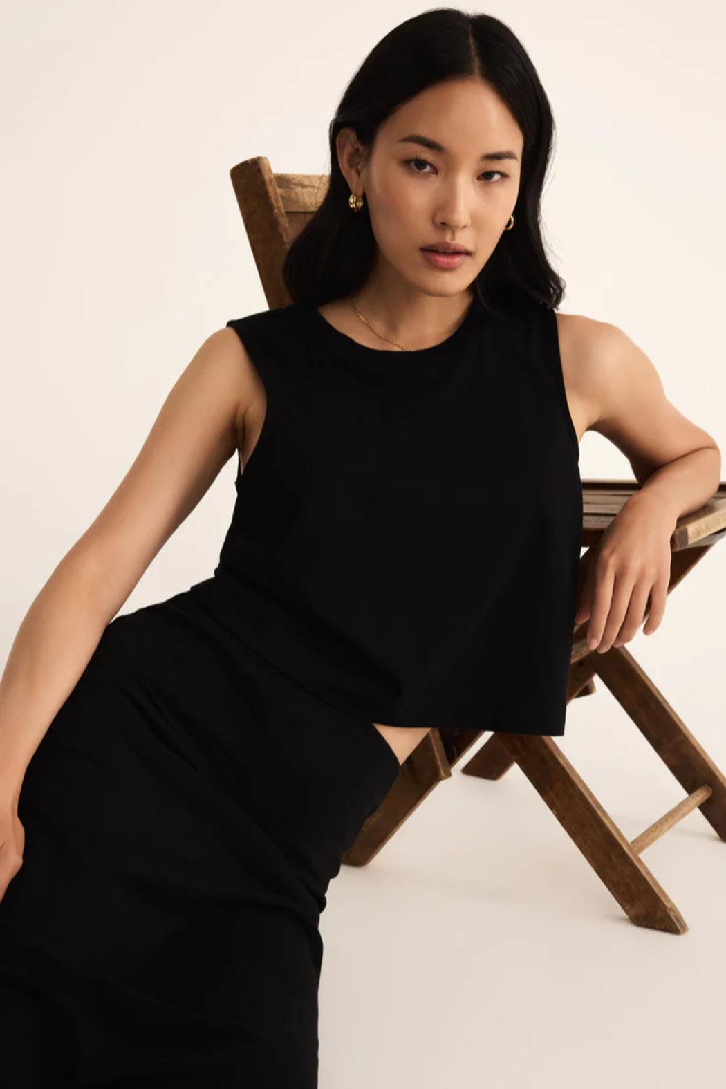 This tank is a must-have in your daily wardrobe, with its sleeveless, crew neck design and relaxed fit. Lightweight and soft, this best-selling top is a versatile and effortless everyday piece.