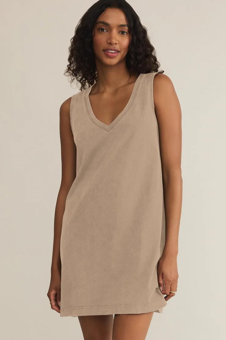 Easy and breezy, this v-neck mini dress is made from soft, midweight cotton jersey for all-day comfort. The sleeveless, relaxed fit makes it perfect for dressing up or keeping it casual.