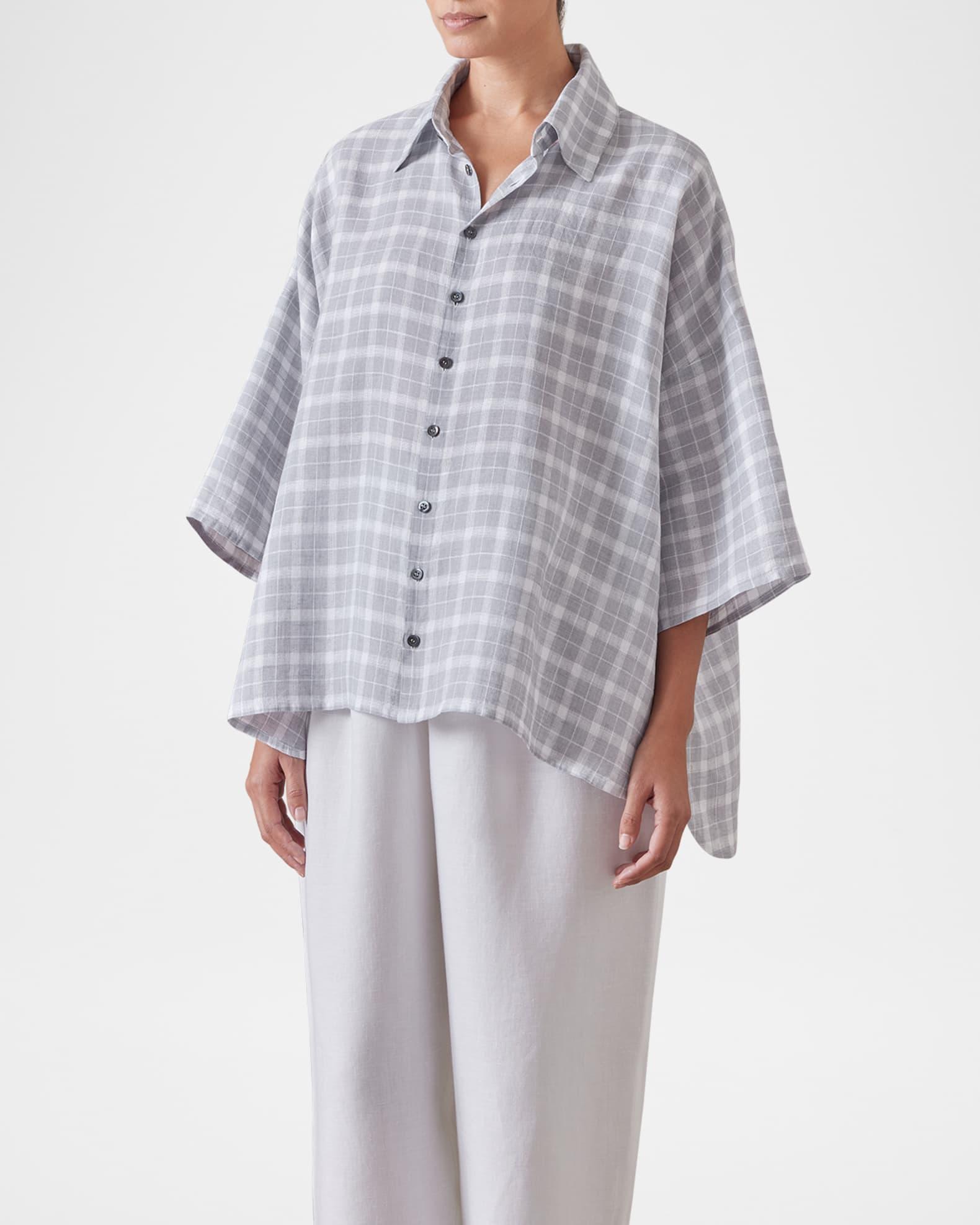 Sloped-Shoulder Wide A-Line Short-Sleeve Shirt With Collar (Mid Length)