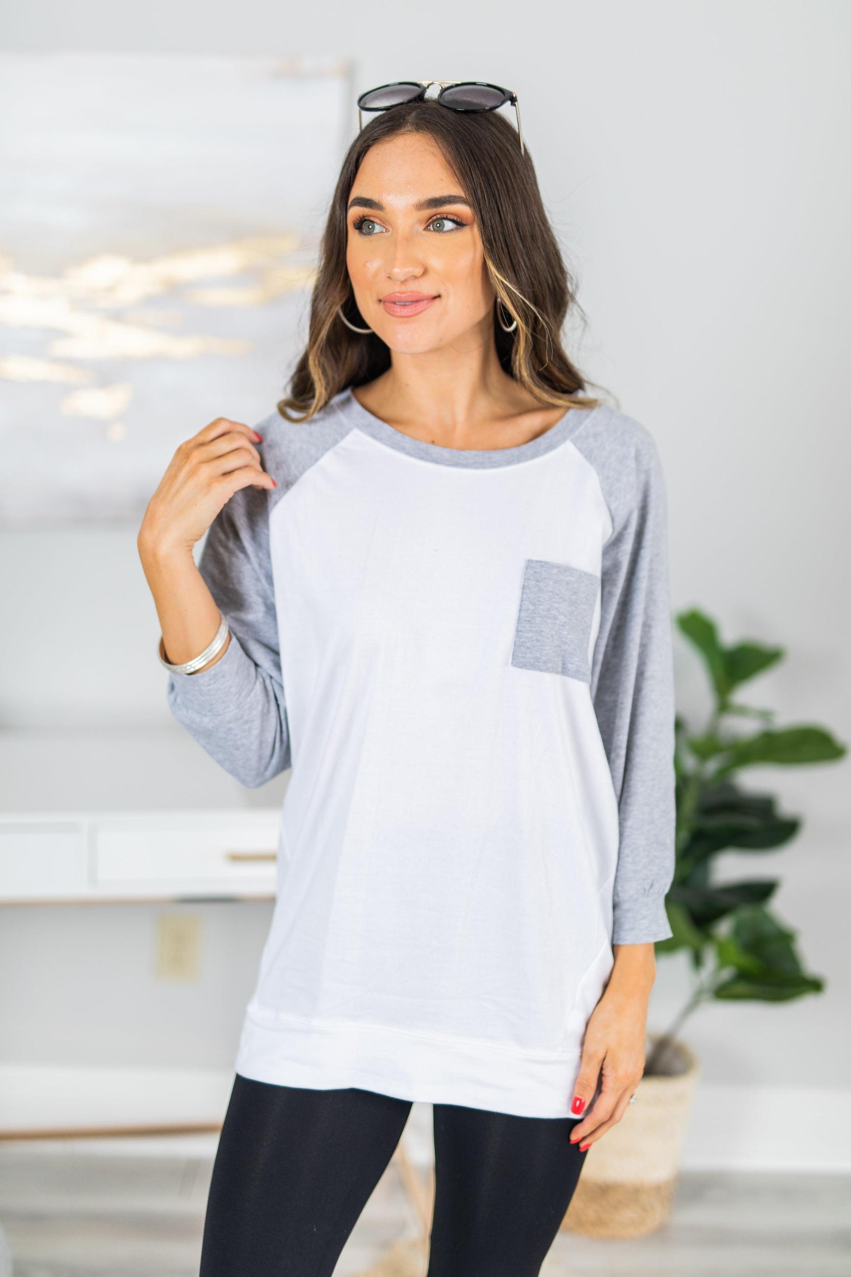Introducing our favorite not-so-basic basic! This brand new, suuuuuper soft Slouchy Dolman Tunic features not only one color, but TWO thanks to the ever-trendy Raglan sleeves and it's oh so popular pocket! It's no secret that the classic baseball style tee is just that- a total classic! Not only will it never go out of style, but it requires very little in the way of style! Whether you add a favorite pair of leggings, tie some plaid around your waist, rock it with a hat, or simply throw it on with your most worn pair of denim, we promise you'll be ready to PLAY BALL! Totally easy AND insanely cute?? Now THAT'S what we call a home run! ;)Miranda is wearing the small. Length from shoulder to hem: 31" Sizes fit: Small- 0-4; Medium- 6-8; Large-10; Extra Large- 12-14 *Promo Price is a FINAL SALE*