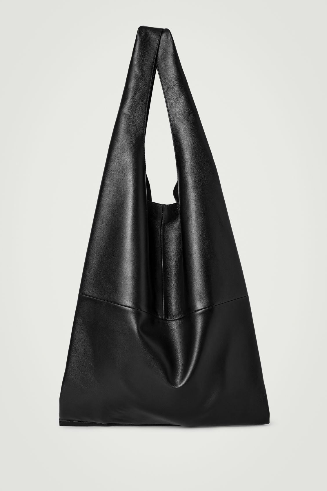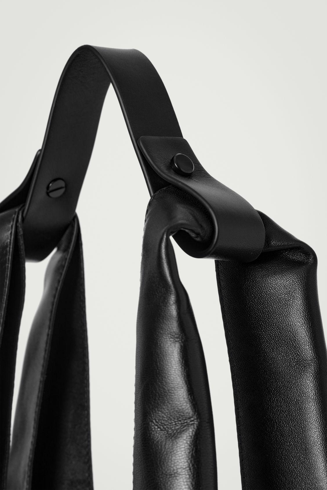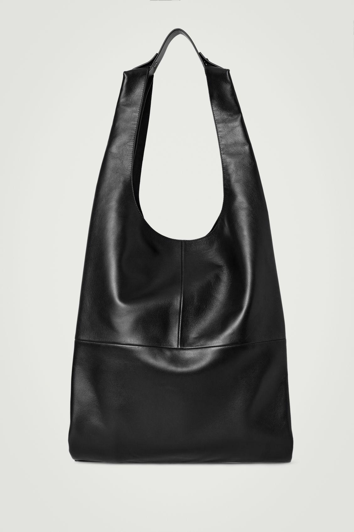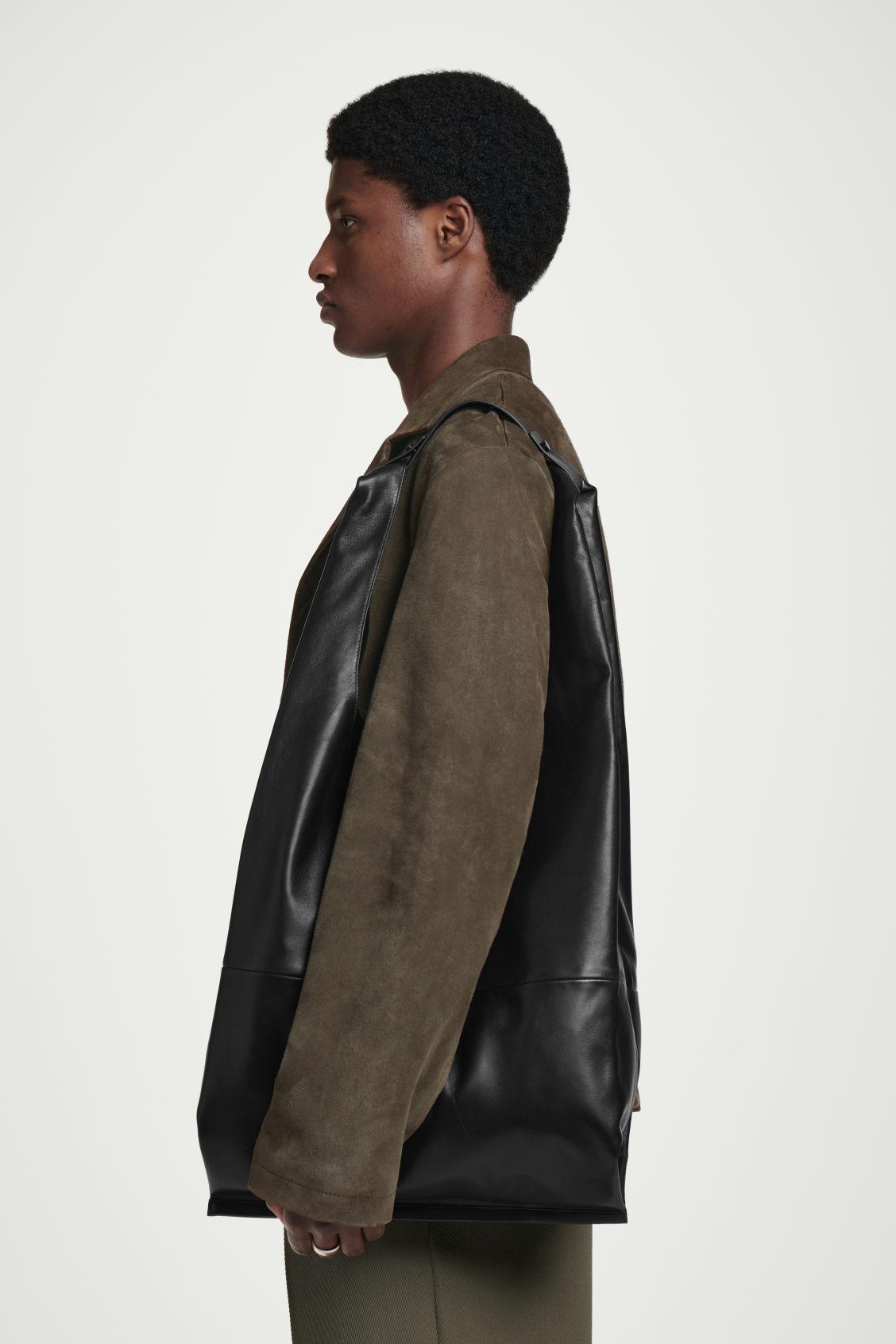 This season, the menswear team reimagines our signature tote in premium leather. Maintaining its pragmatic shape, this slouchy shopper has ample space to hold everything you need for a day in the city, including a secure internal pocket. It's designed with a pair of shoulder straps that are held in place by a detachable leather tab. COS supports responsible manufacturing via the Leather Working Group Shell: 100% Leather. Excluding trims Height: 46.8cm, Width: 40.4cm, Depth: 11cm