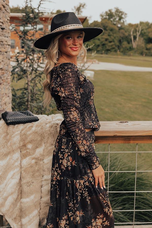 - This chic top is giving fall vibes! With a charming smocked design and autumn inspired color pallet, this piece is perfect for everything from brunches to seasonal events. - Unlined smocked chiffon material with a stone, khaki, rust, and cinnamon colored floral print - A square cut neckline - Long sleeves - A flattering silhouette that ends in an uneven, curved hemline