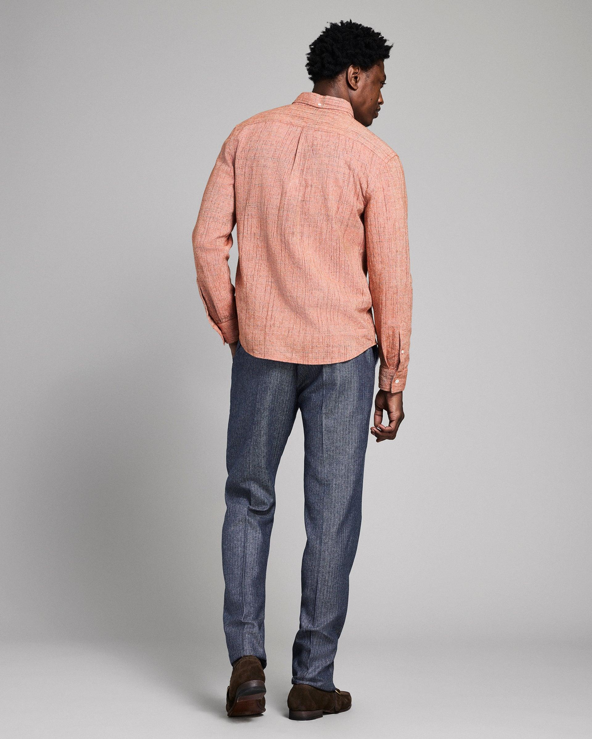 Our best-selling Tuscumbia shirt is the cornerstone of lived-in luxury. This plain weave version is cut from soft cotton and woven with slub yarns for a subtle pop of color and amazing texture. It’s constructed with a button-down collar, our signature notch pocket with double-needle stitching, straight double yoke with