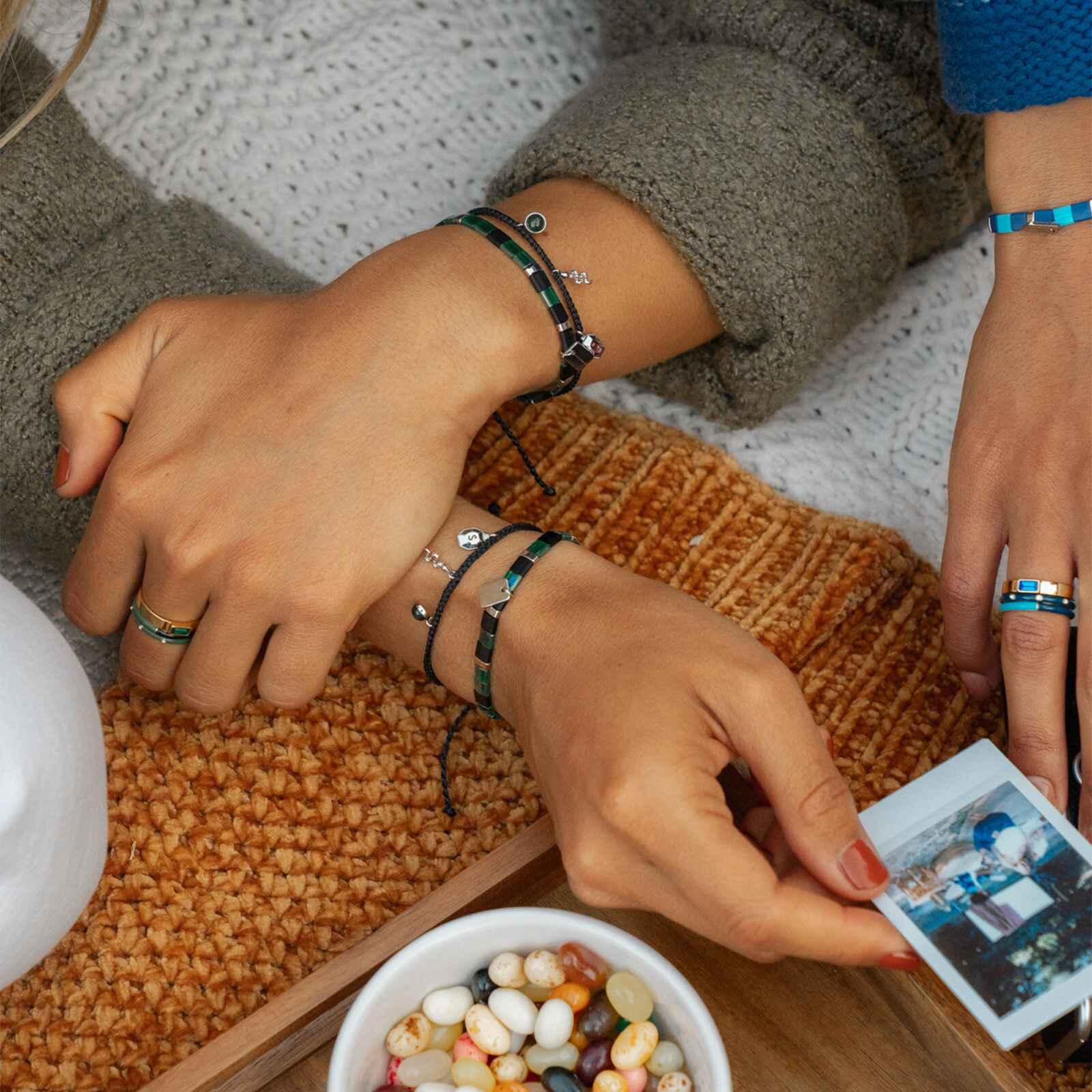 Be cunning (and cute) in our Slytherin Tile Bead Stretch Bracelet. This stackable style features a slip-on-and-off design, with green and silver beads and a bitty charm engraved with the house’s serpent mascot. For every bracelet sold, Pura Vida will donate 5% of the purchase price to the World Literacy Foundation, with a maximum donation of $25,000. Your donations will help further the World Literacy Foundation’s mission to ensure that every child—regardless of geographic location—has the opportunity to acquire literacy skills and books to reach their full potential! *If you'd like to learn more about our charity donations, click here. WIZARDING WORLD characters, names and related indicia are © & ™ Warner Bros. Entertainment Inc. Publishing Rights © JKR. (s23)