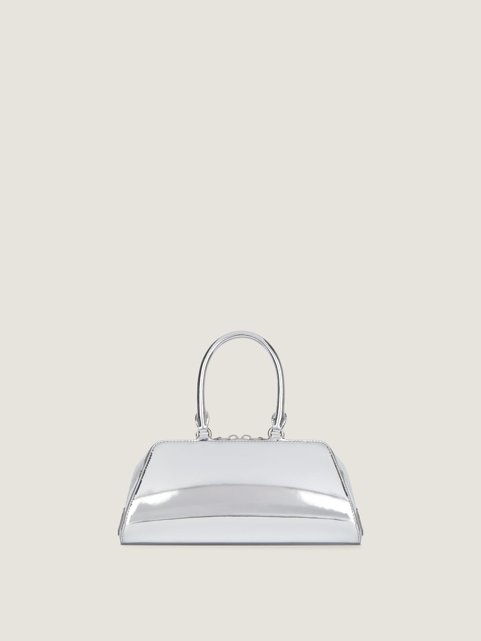 Small handbag or crossbody bag in laminated calfskin leather with mirror effect and shiny grained leather. Antigona Cube line. Long East-West shape with origami-style gusset construction. Zipped closure. Articulated leather handles with four D-Rings for the shoulder strap. Adjustable and removable leather shoulder strap. Pentagonal patch with embossed GIVENCHY signature on the front. Silvery-finish metal details. One main compartment with one card slot inside. Delicate leather, to preserve this item over time, we recommend you take the following precautions: Keep the item away from heat sources. Avoid any contact with greases, cosmetics or perfumes. When the item is not in use, store it with care in its dust bag and in a cool, dry place. Try not to let your bag rub against other objects as this may lead to damage or peel it.