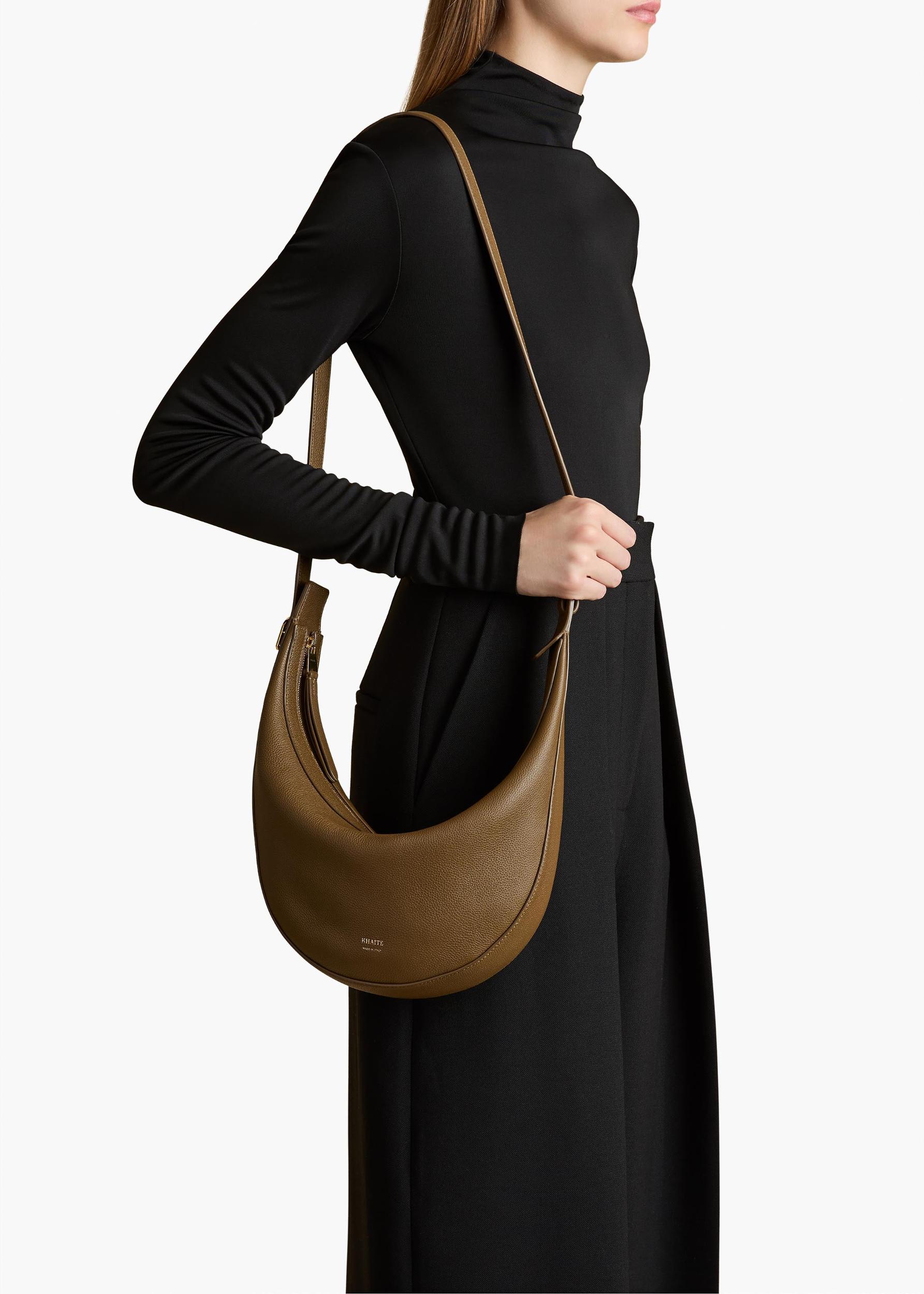 Small Augustina Crossbody Bag in Dark Olive Pebbled Leather