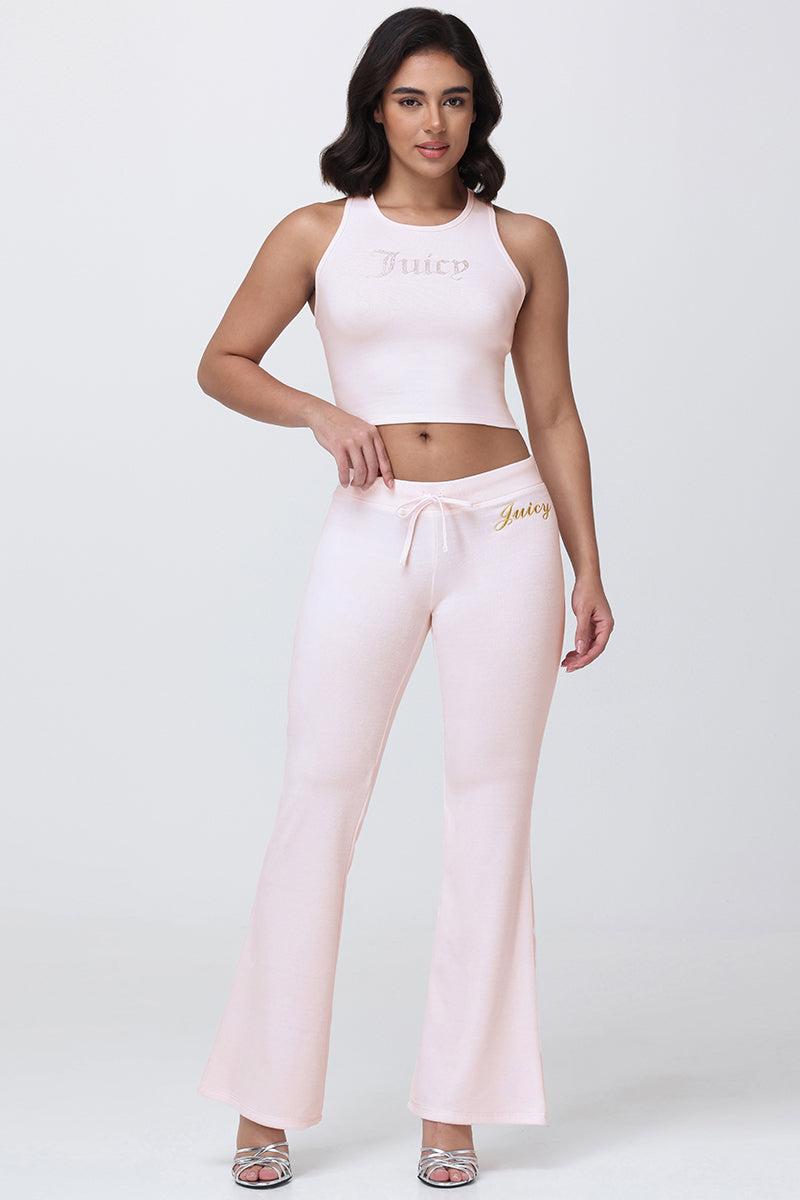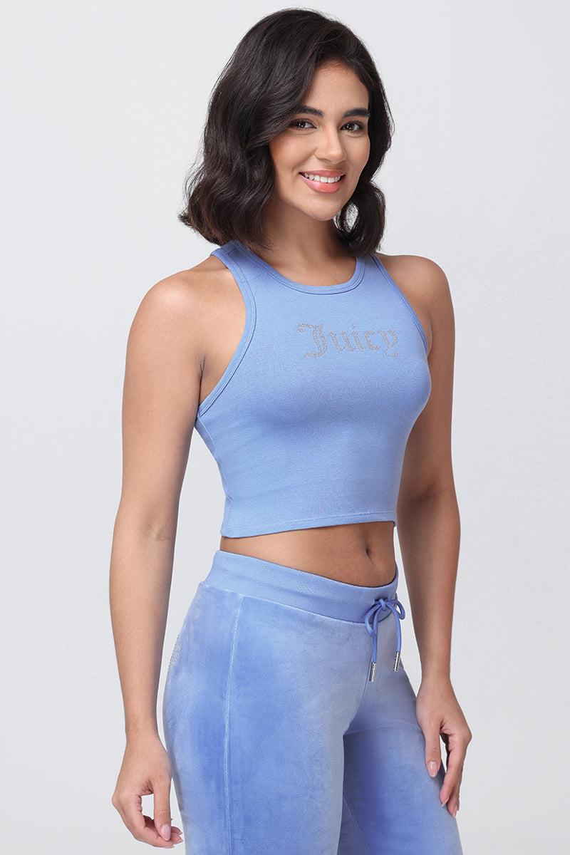 Turn heads with this Small Bling Crop Tank. Featuring delicate sparkling embellishments, it’s the perfect mix of edgy style and playful charm. Pair it with your favorite jeans, skirts, or velour bottoms for an iconic Juicy look.
