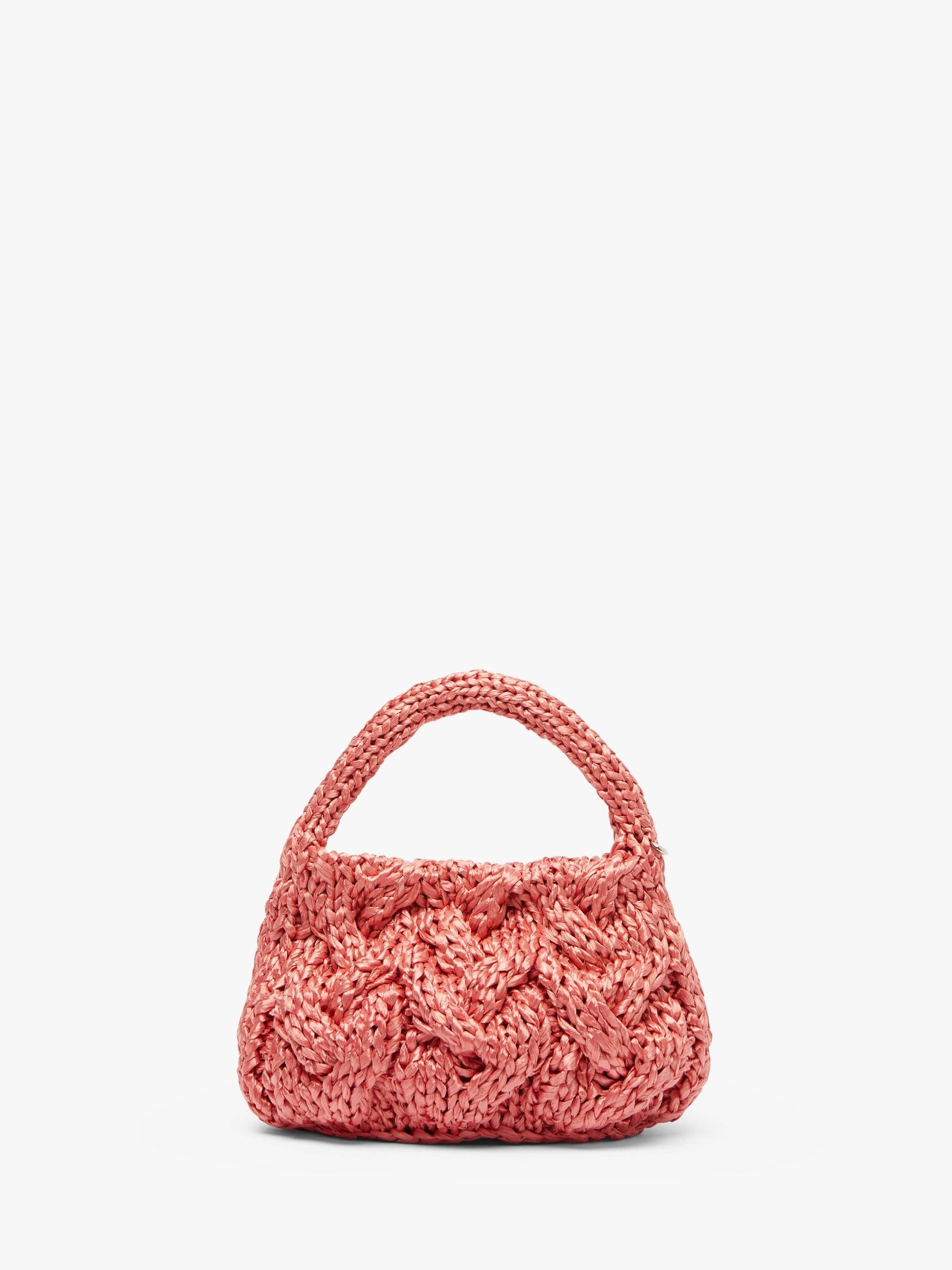 SMALL CABLE KNIT BAG - RAFFIA TOP HANDLE BAG