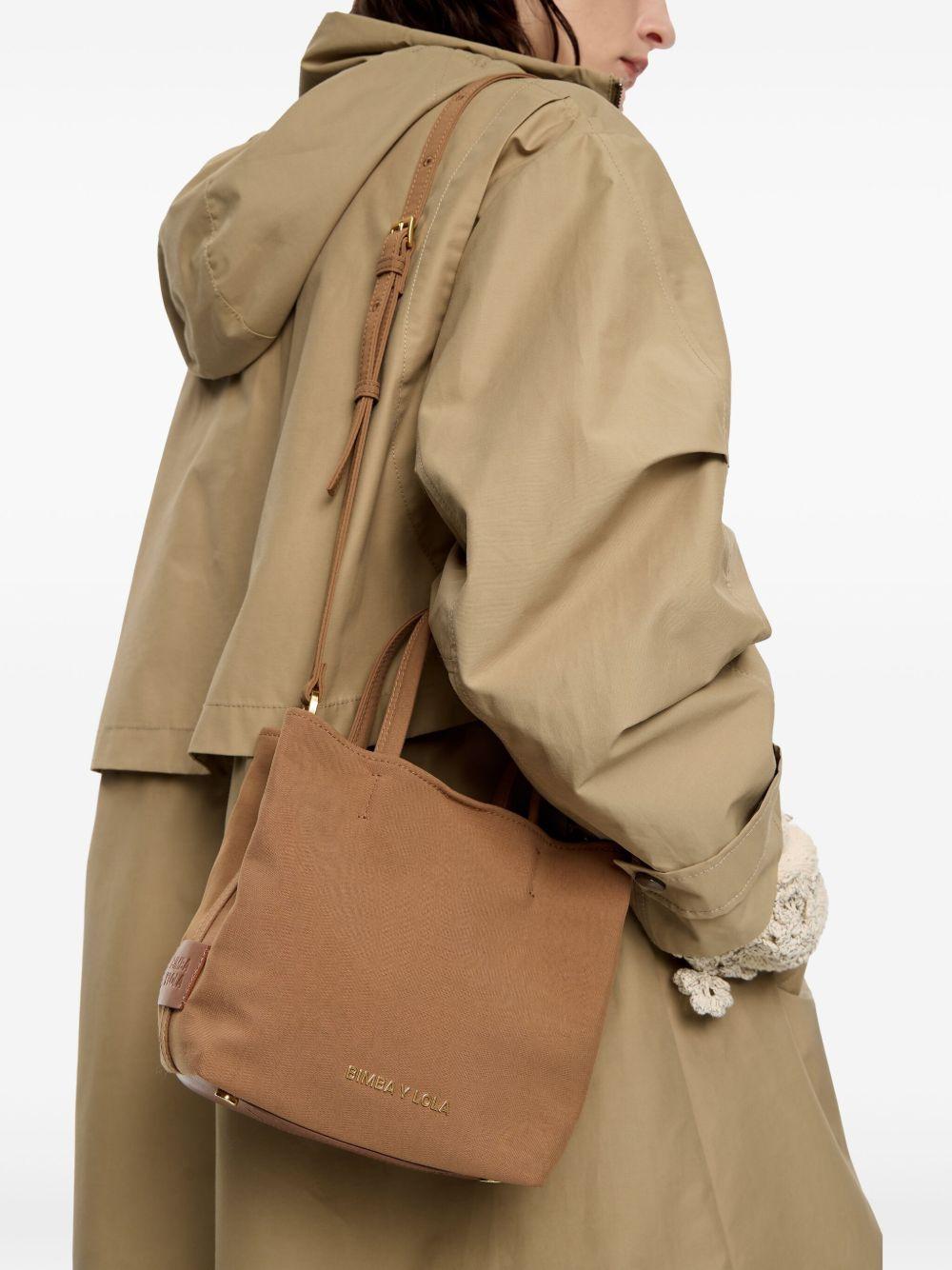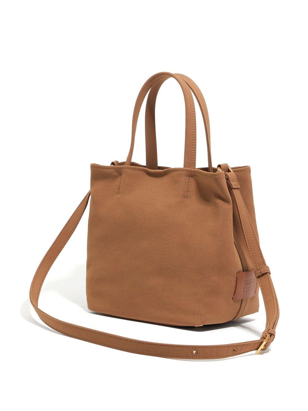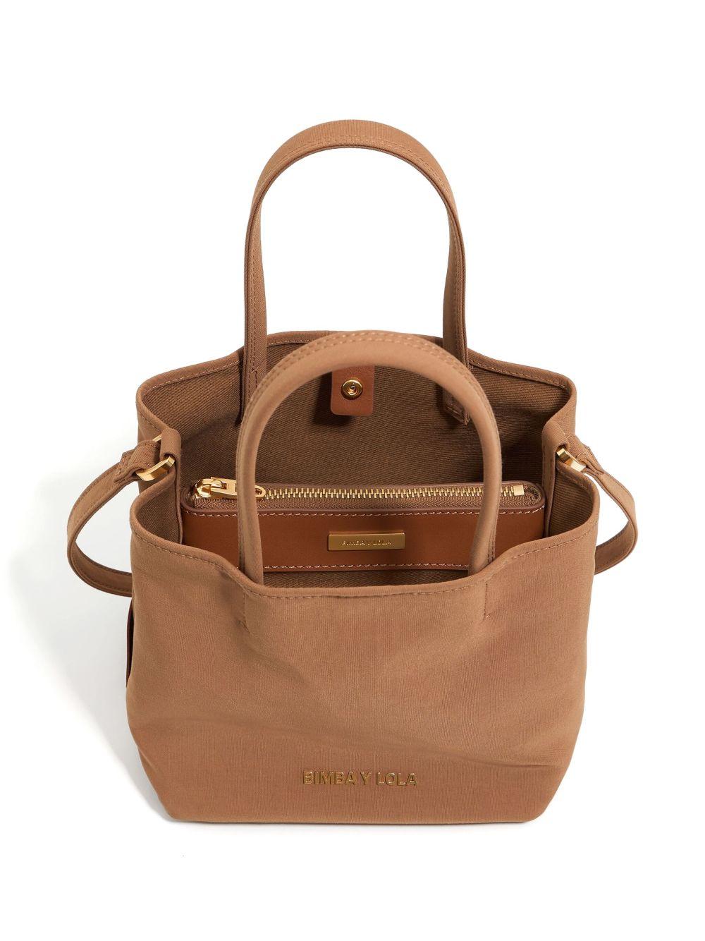 Bimba y Lola small Chihuahua tote bag | Brown | warm brown | structured silhouette | two top handles | adjustable shoulder strap | logo detailing | snap closure | gold-tone hardware | protective feet | spacious interior | Polyamide/Calf Leather/Cotton | Tote Bags | Bags | Women