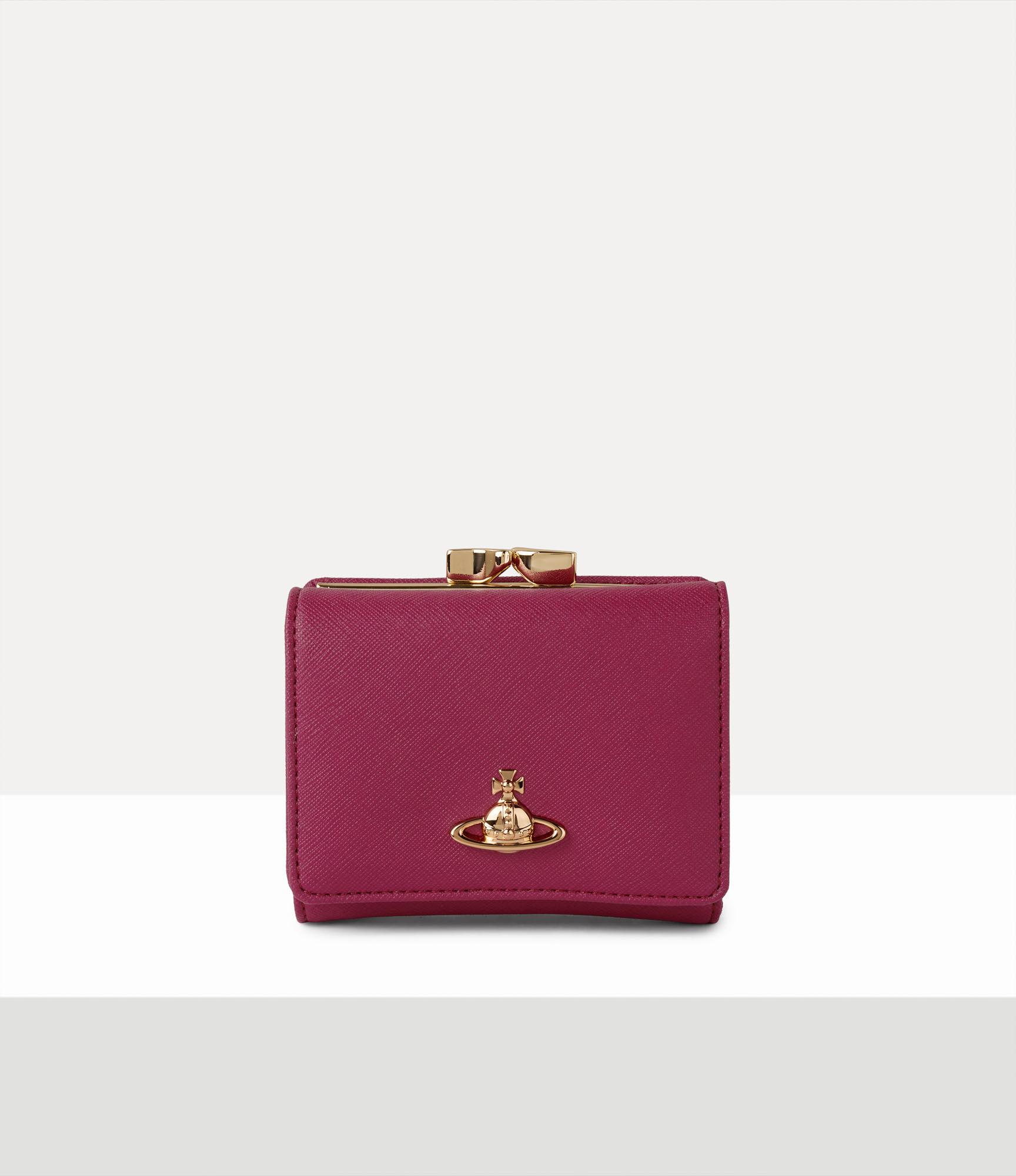 Our Small Frame wallet features a classic PU leather profile, complete with a saffiano-embossed finish across the design. Adorned with a gold-tone bas relief orb motif at the front, the piece recalls Vivienne's vision of launching tradition into the future.