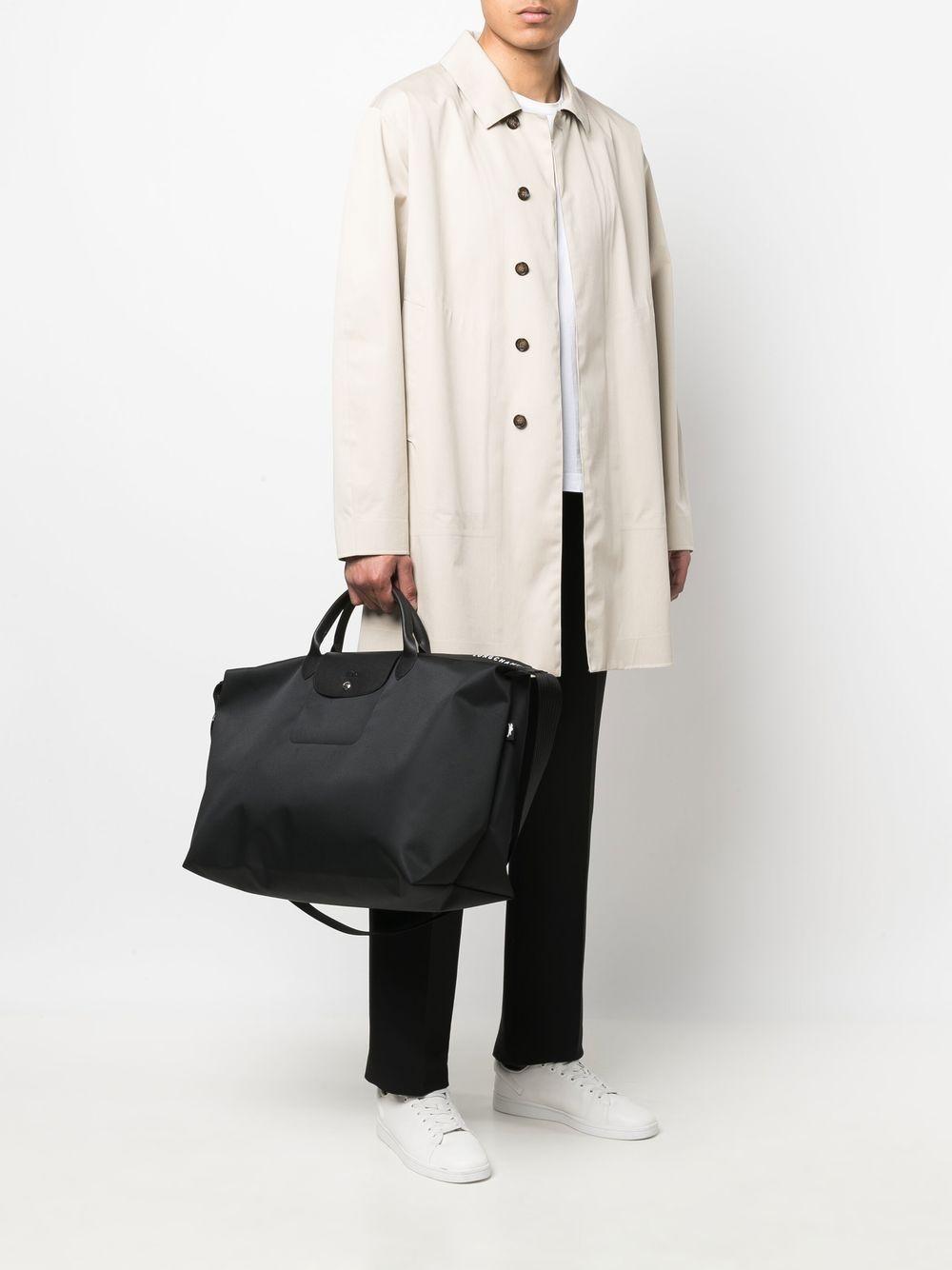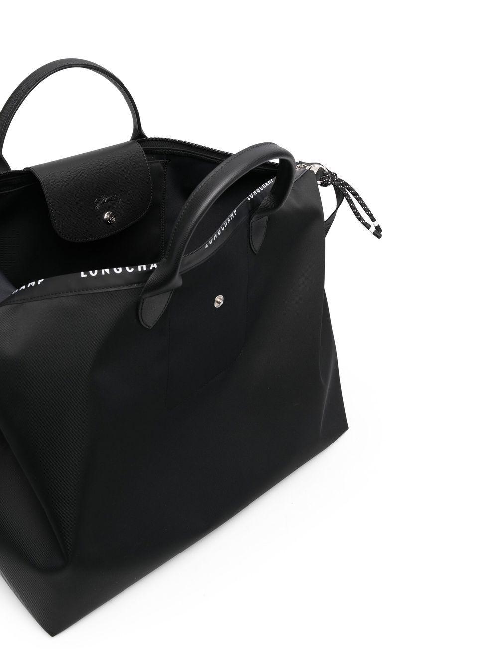 Shop Longchamp Le Pliage Energy Holdall In Black from 600+ stores, starting at $335. small Le Pliage Energy holdall from LONGCHAMP featuring black, debossed logo to the front, logo print to the front, leather trim, leather top handles, foldover top with press-stud fastening, top zip fastening, main compartment and adjustable detachable shoulder strap.