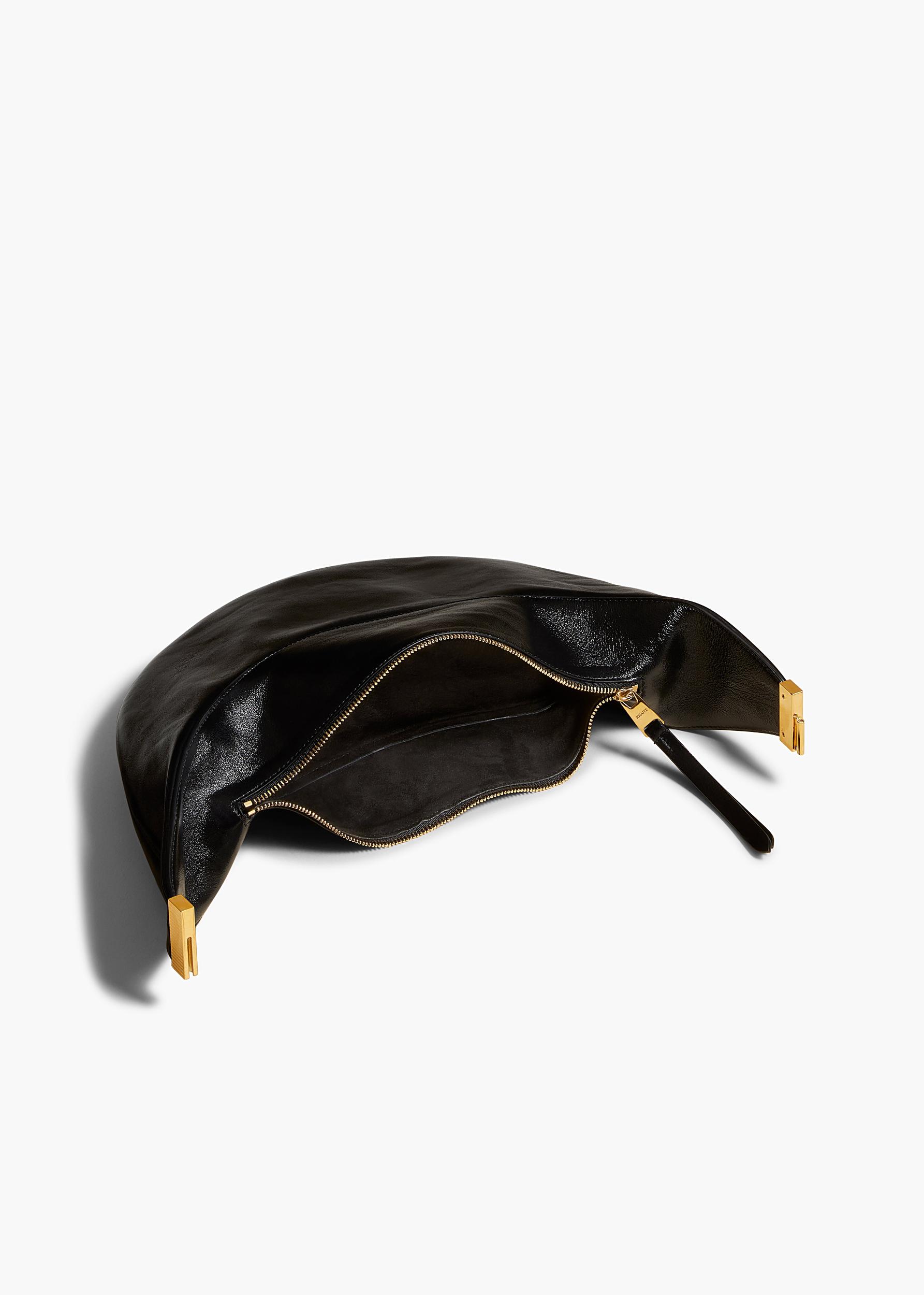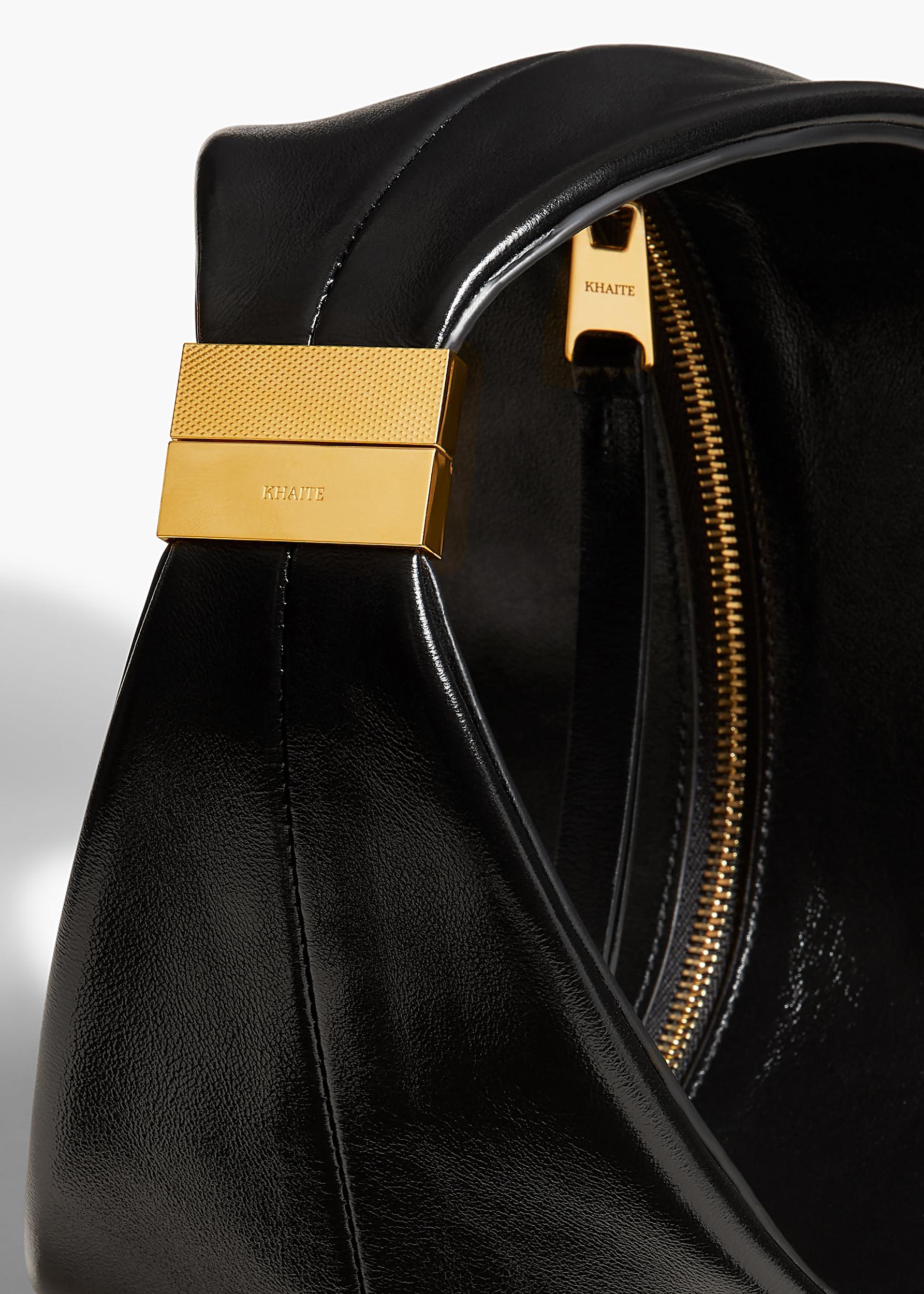 Small Olivia Hobo with Hardware in Black Crackle Patent Leather