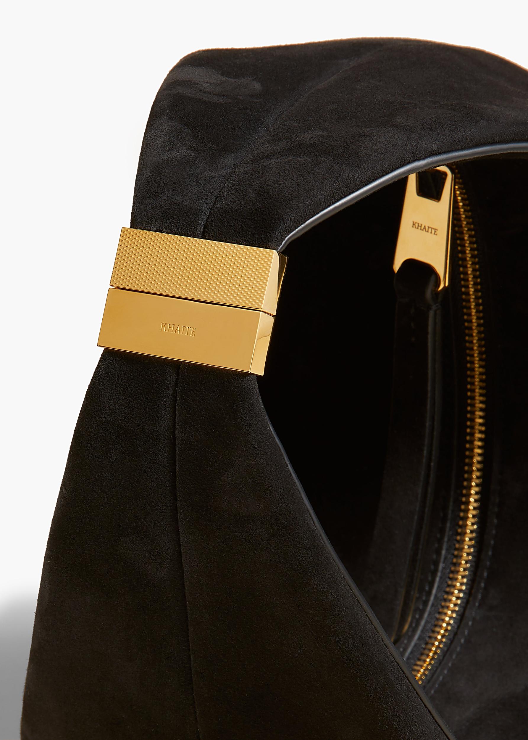 Small Olivia Hobo with Hardware in Black Suede