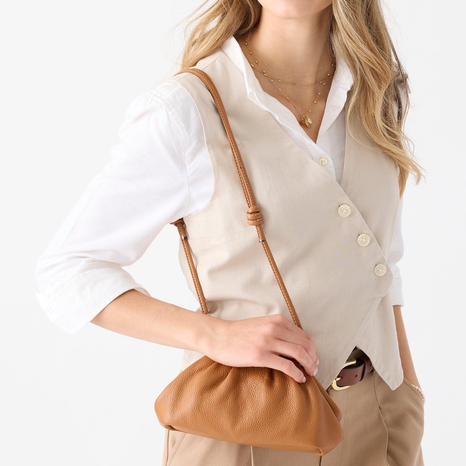 Introducing the Small Taber Crossbody, where soft pleats meet sophisticated design for an accessory that’s as versatile as it is stylish. This mini dumpling-style handbag boasts a unique silhouette that effortlessly enhances any outfit, from casual daywear to evening ensembles. The gentle folds create a plush, tactile appeal. Add a touch of understated luxury to your wardrobe with the Small Taber Crossbody—your new go-to for timeless elegance.