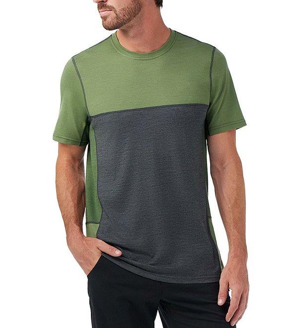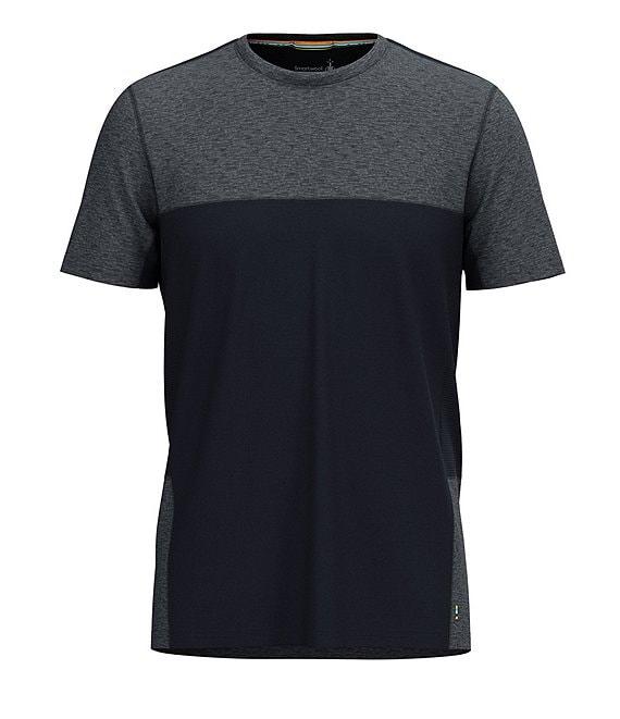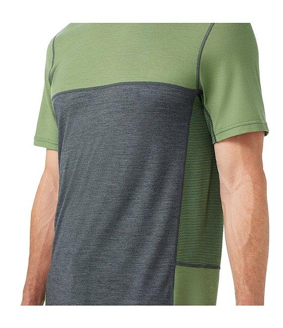From SmartWool, this t-shirt features: Color block detail Crew neckline Locker loop at the interior of the neck Short sleeves Targeted mesh zones are designed to help increase breathability where your body needs it Regular fit Exaggerated drop tail for extra coverage Temperature regulation Moisture management Merino wool/recycled polyester/TENCEL™ lyocell Machine wash/tumble dry Imported.