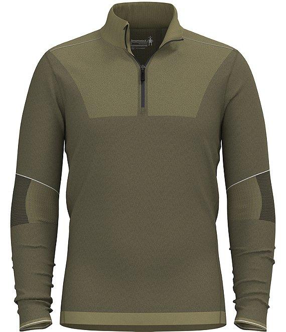 From SmartWool, this pullover features: Solid tone Mock neck Long sleeves Quarter-zip closure Slim fit Pullover construction Intraknit™ technology: insulation, articulation, and ventilation are seamlessly integrated to help movement and comfort during high-intensity activities Moisture-wicking Thermoregulation Odor control Stretch fabric Merino wool/polyamide/elastane Machine wash/tumble dry Imported.