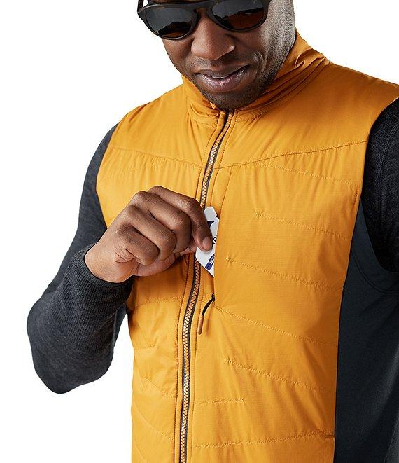 From SmartWool, this vest features: Solid tone Stand collar Full-zip closure 2 zippered hand pockets 1 zippered chest pocket Wind-resistant DWR (Durable Water Repellent) Regular fit Stretchy merino based fleece fabric Shell: Recycled nylon Side panel: Recycled polyester/merino wool/elastane Lining: Merino wool/recycled polyester Fill: Recycled wool/reprocessed wool/polyester Machine wash/tumble dry Imported.