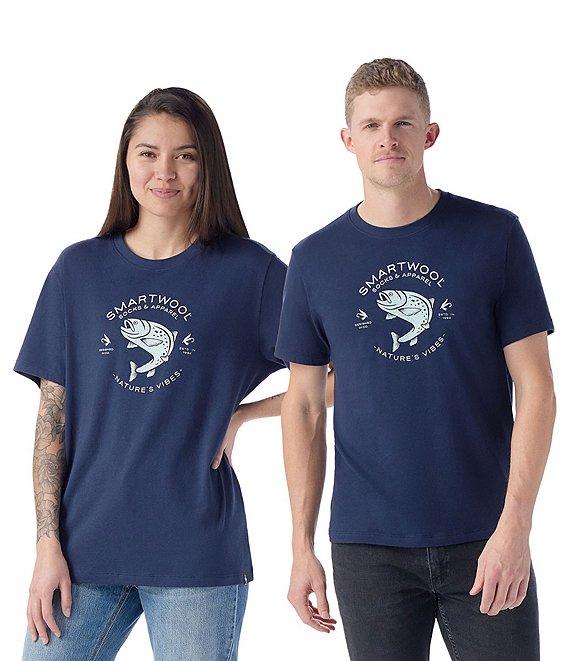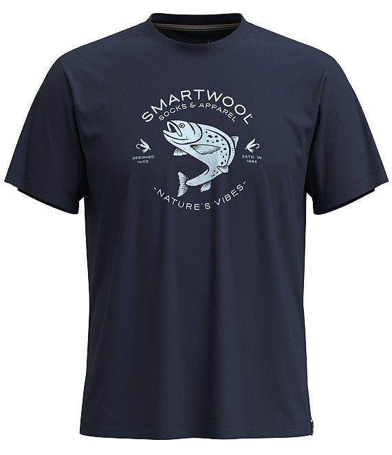 From SmartWool, this t-shirt features: Ribbed crew neckline Short, set-in sleeves designed to help increase comfort Graphic on front Pullover construction Standard fit Temperature regulation Odor resistant Moisture management Merino wool/cotton Machine wash/tumble dry Imported.
