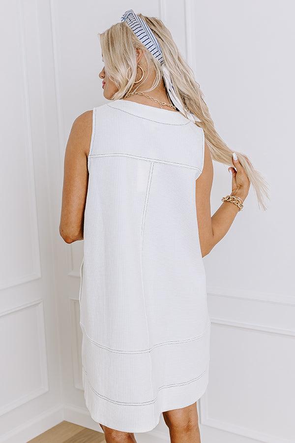- Embrace the perfect blend of fashion and comfort with this must-have mini dress. This versatile piece combines comfort with a touch of edgy sophistication. The trendy waffle texture elevates the look, while the zippered front offers a modern twist. Pair it with sneakers for a playful look or go for chic style with wedges and your favorite faux leather bag. - Unlined material with a waffle texture and accent stitching - A v-cut neckline - A zip closure front featuring gold colored hardware - A sleeveless cut - Functional side pockets - A relaxed silhouette that ends in a mini dress length hemline