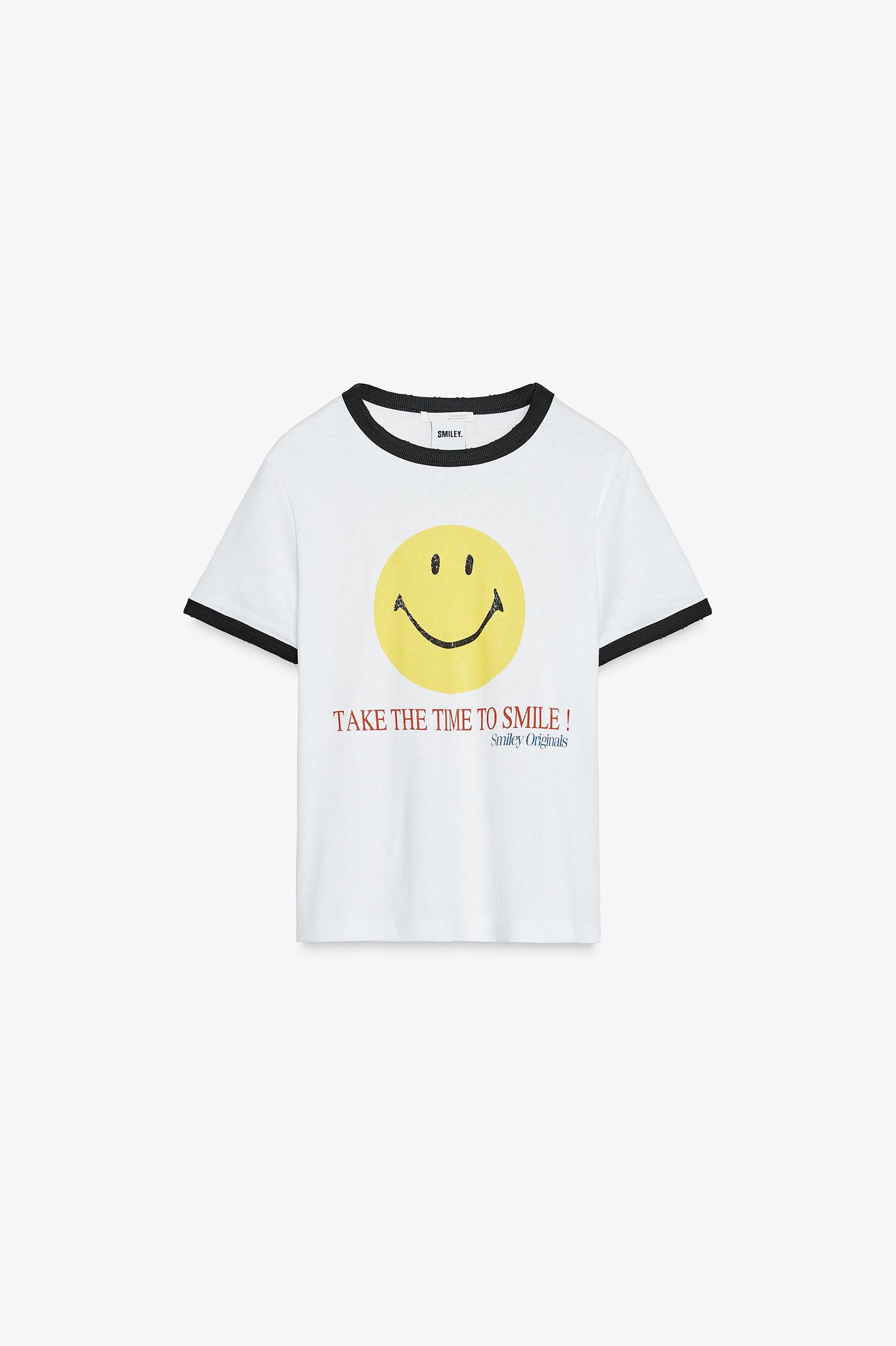 REGULAR FIT - ROUND NECK - REGULAR LENGTH - SHORT SLEEVE T-shirt made with a cotton blend. Round neck and short sleeves. Contrasting ribbed trim. Smiley® print and text detail.