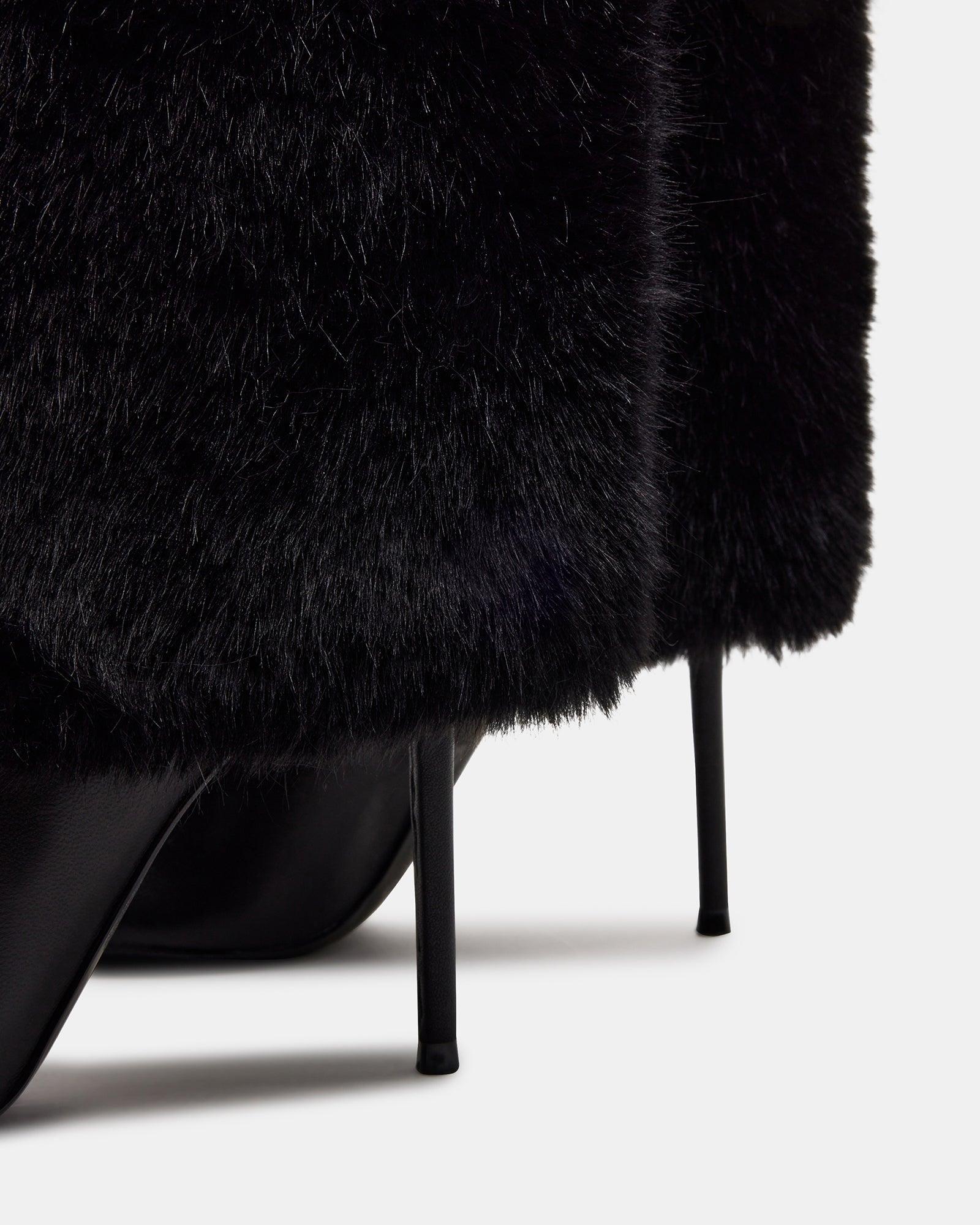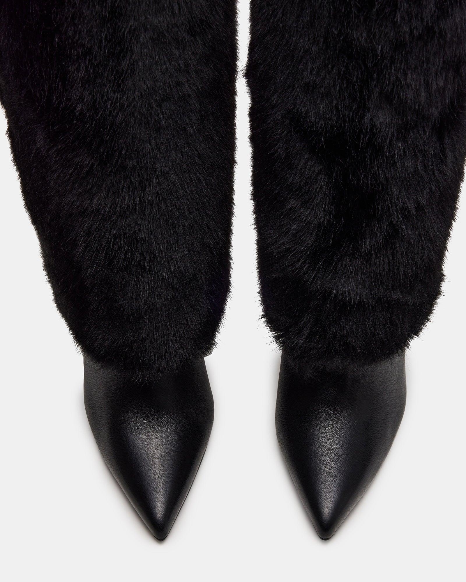 REFINED + ELEGANT + CONTEMPORARYA stiletto heel and a pointed-toe peek from under the SMITH knee boot's fold-over construction. Step out into style with this versatile boot. Point-toe stiletto fold-over knee boot Slip-on style 4 inch heel height 13.75 inch shaft circumference 14.5 inch shaft height Leather, synthetic, and faux fur upper material Faux fur lining Synthetic sock Synthetic sole Imported