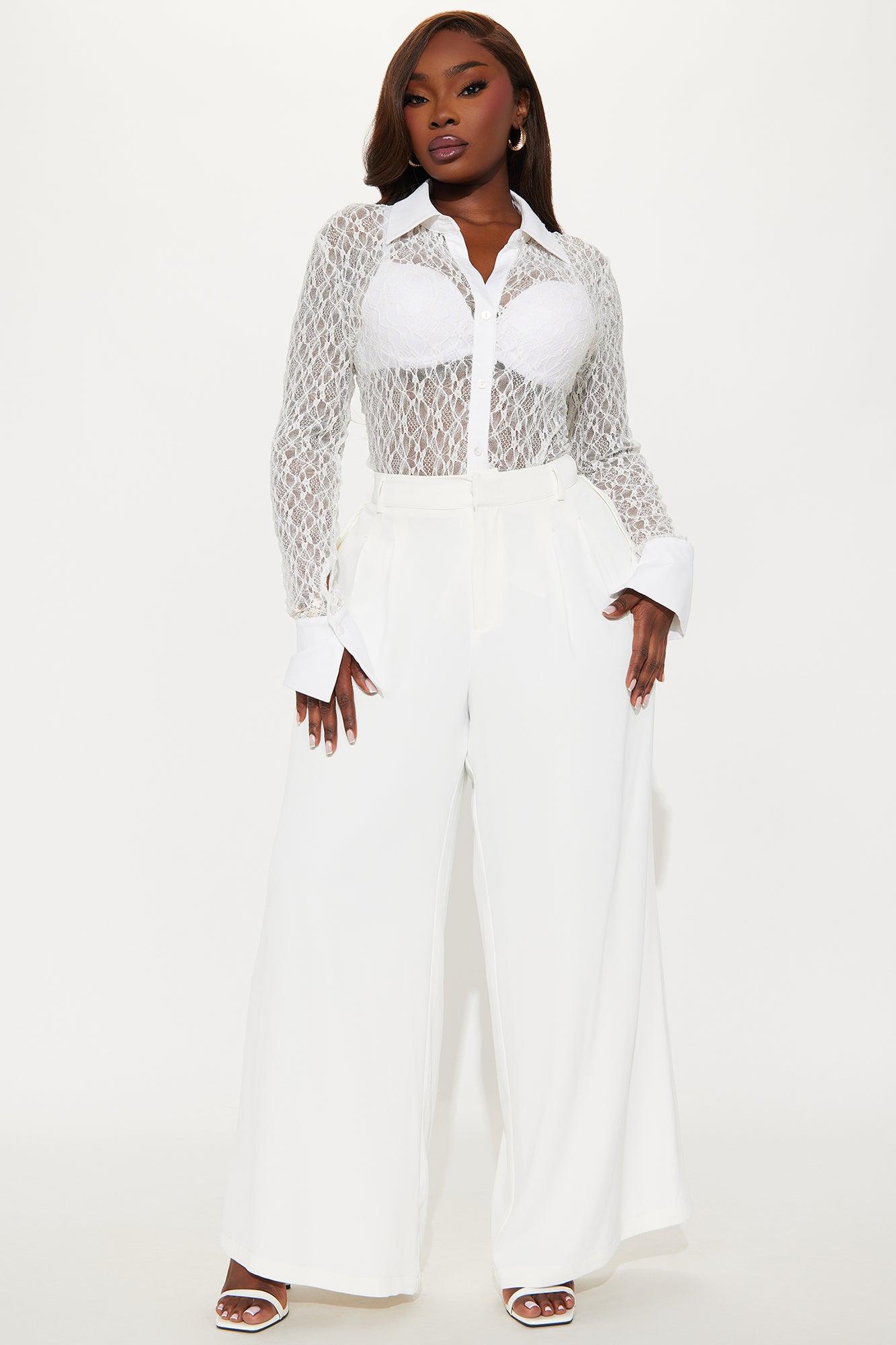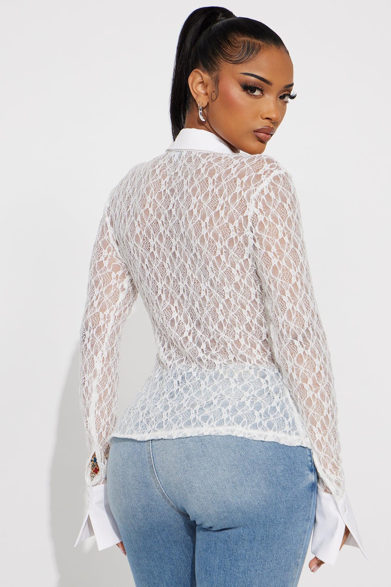 Smitten Lace Long Sleeve Button Up Shirt - White