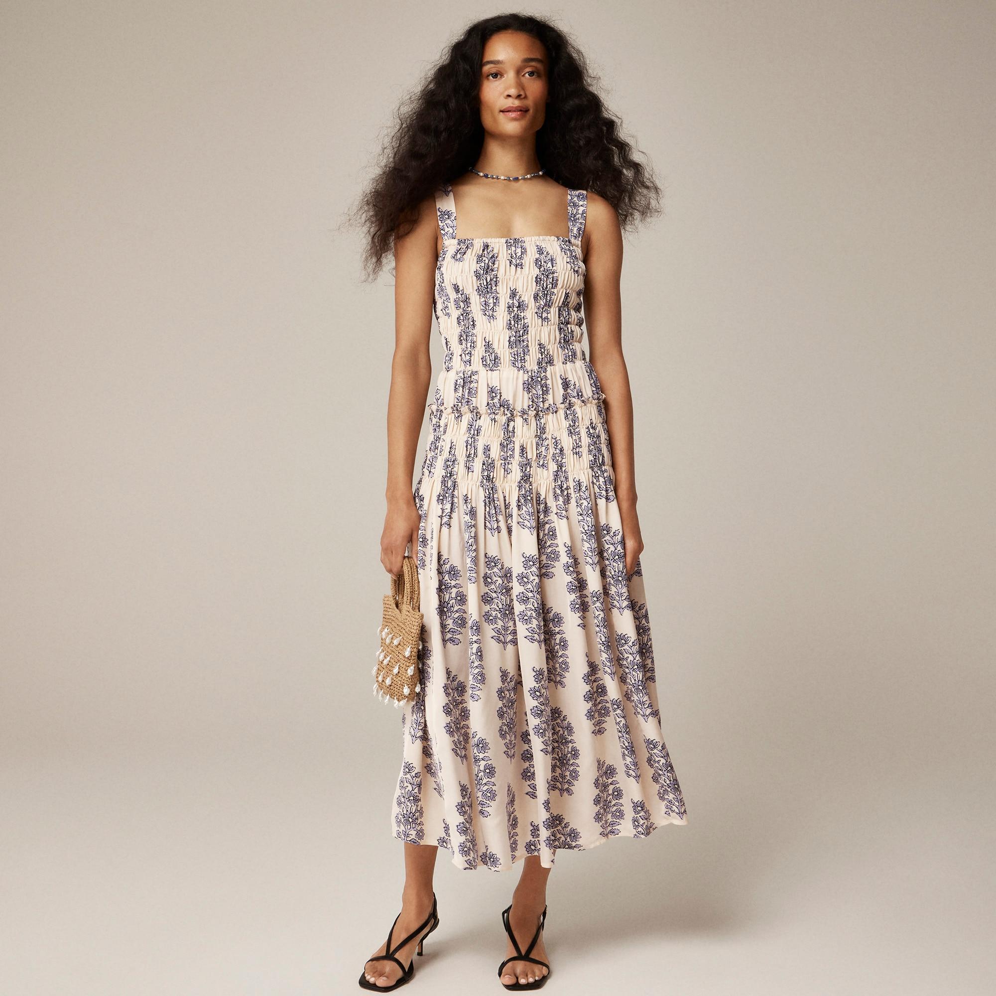 Shop for the Smocked-bodice midi dress in block print for women. Find the best selection of women womens-categories-clothing-dresses-and-jumpsuits available in-stores and on line.