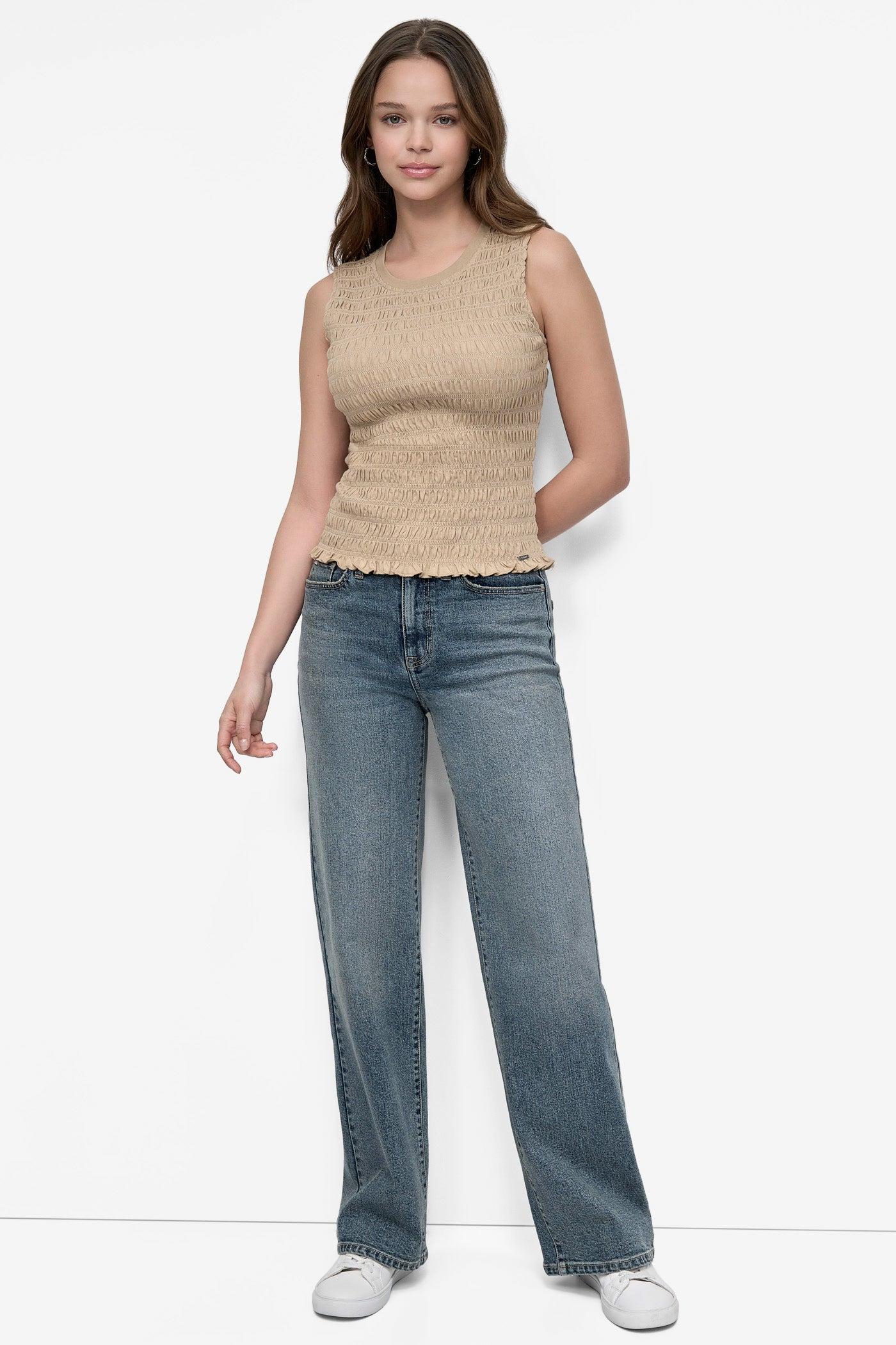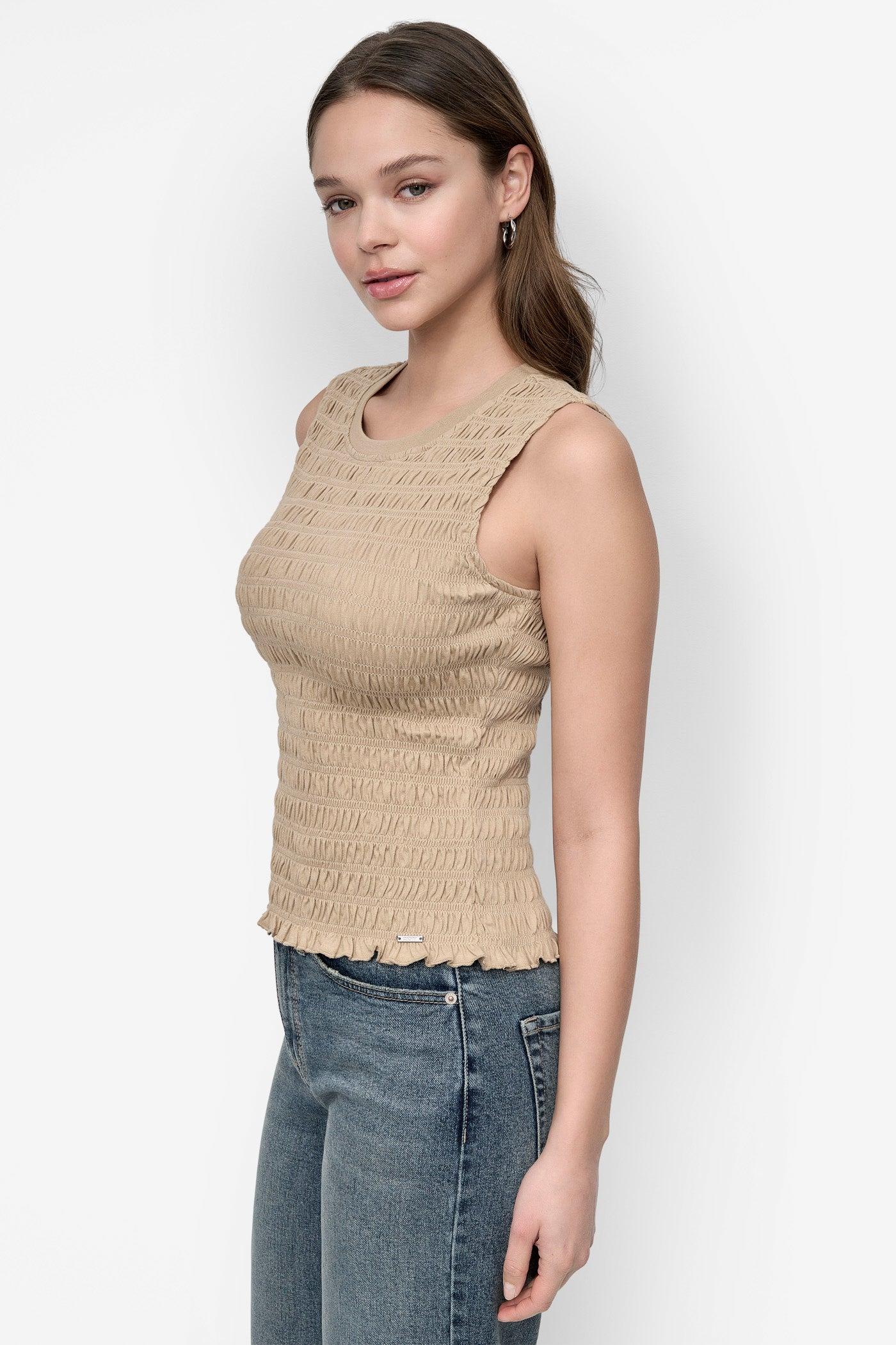 Sleeveless smocked cotton teeCrew neck, pull-on styleUnlined100% cotton knitMachine wash col...