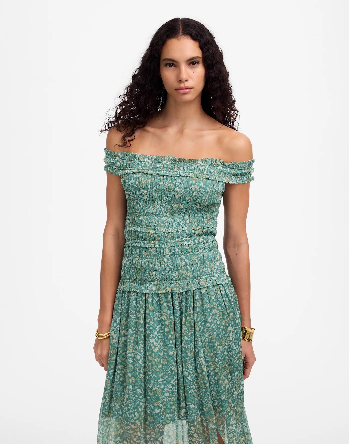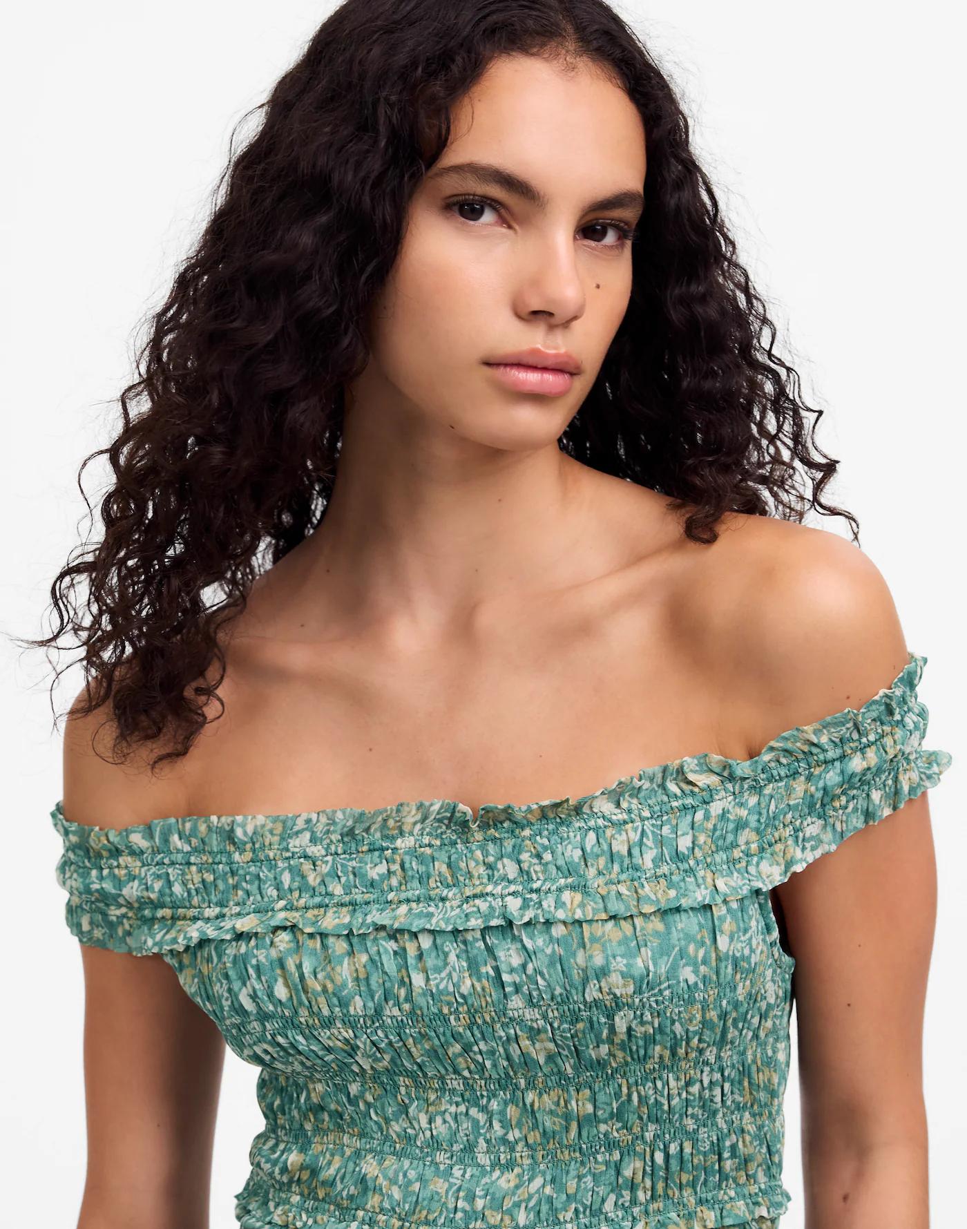 Smocked Off-Shoulder Dress in Floral