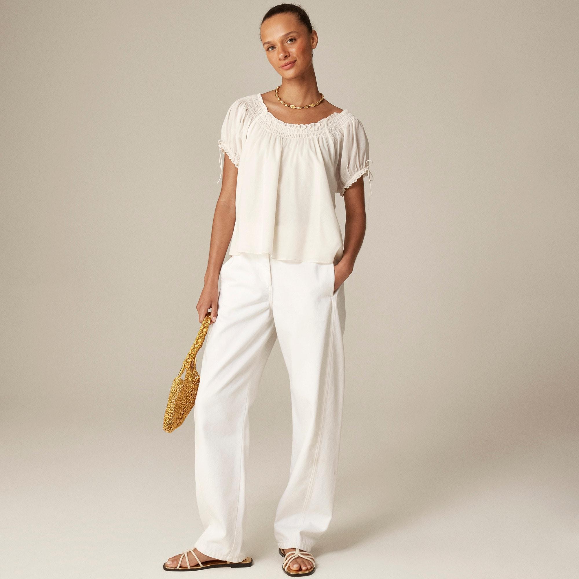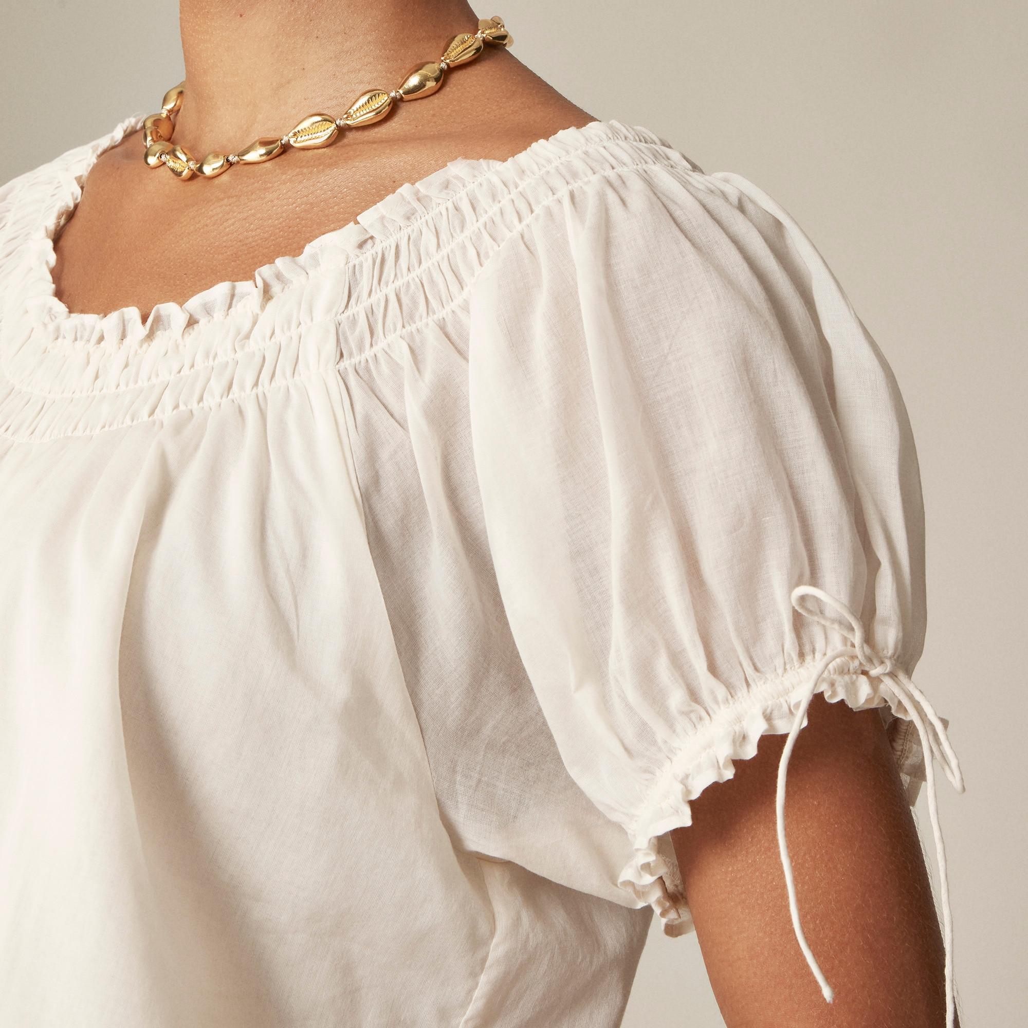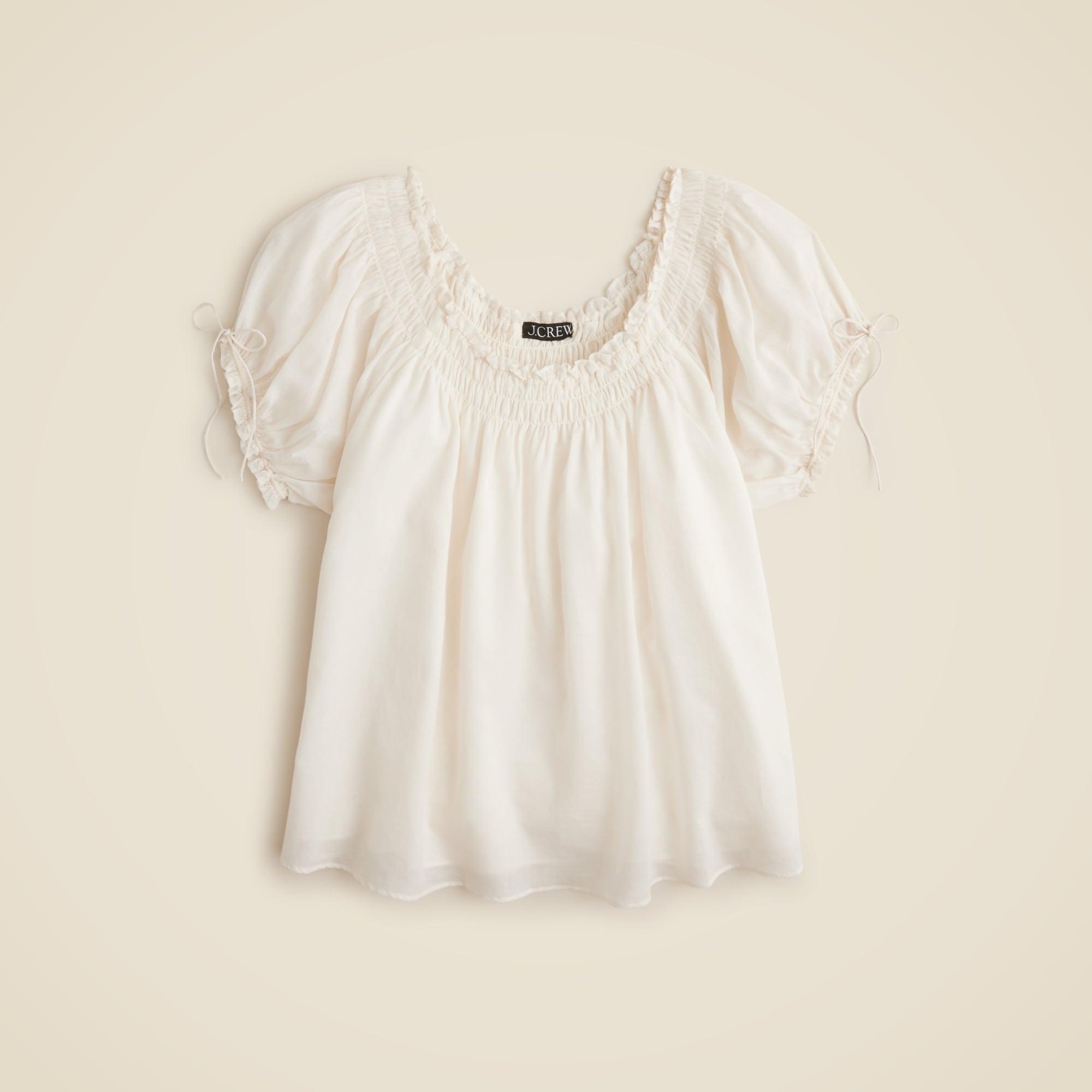 Smocked ruffle-trim top in cotton voile
