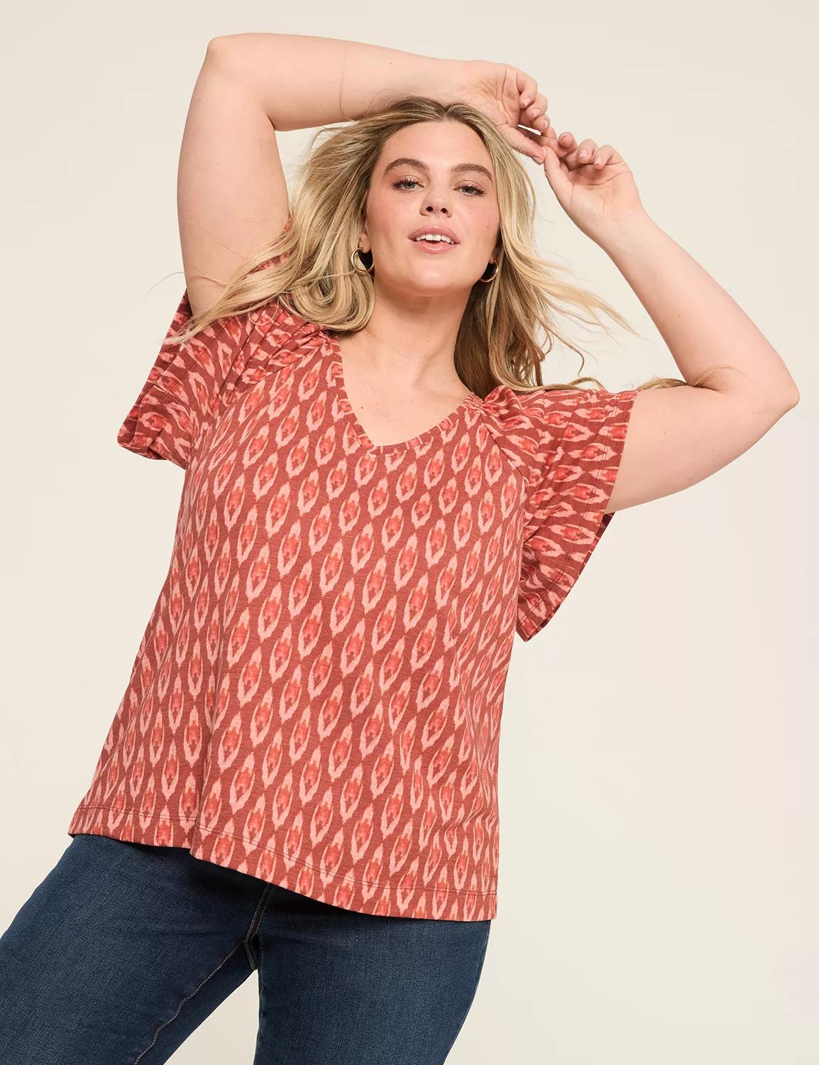 Available in Plus Size Surrounded in soft, delighted by the details - this top comes in jersey knit youll love, with eye-catching smocking at the neckline. FIT: Classic. Designed for curves and a not-too-tight, not-too-loose, just-right fit. Front Length (On Body): 29 Standard length FEATURES: V-neck with smocking Short sleeves FABRIC: Soft, stretchy & breathable jersey knit Machine Wash 60% Cotton/40% Polyester Item Number #412560 Imported Plus Size Top . Plus Size Smocked V-Neck Top, in Red