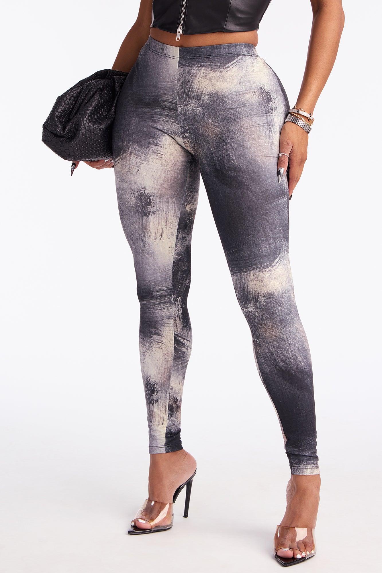 Smoke And Mirrors Mid Rise Abstract Legging - Grey/combo Female