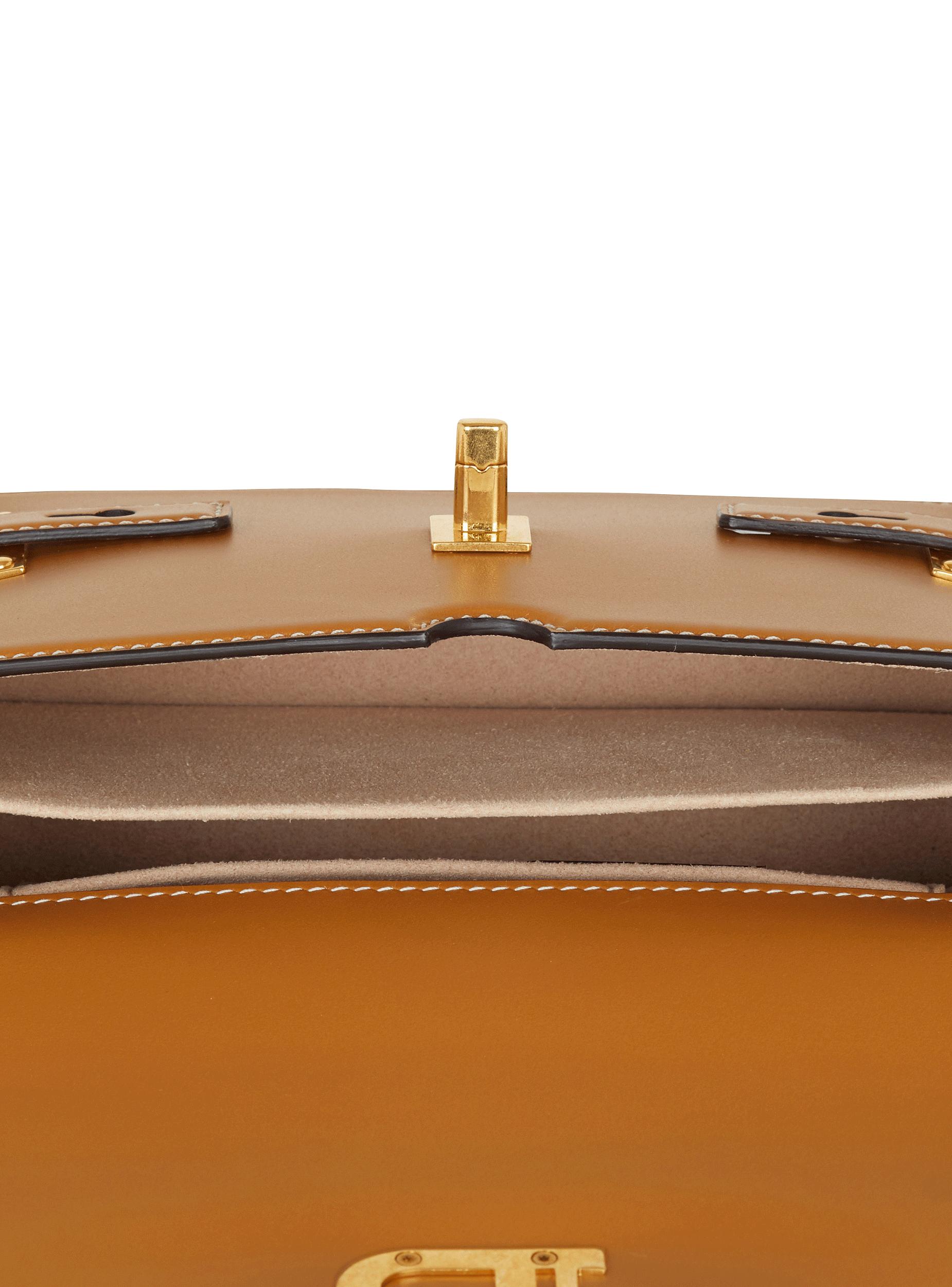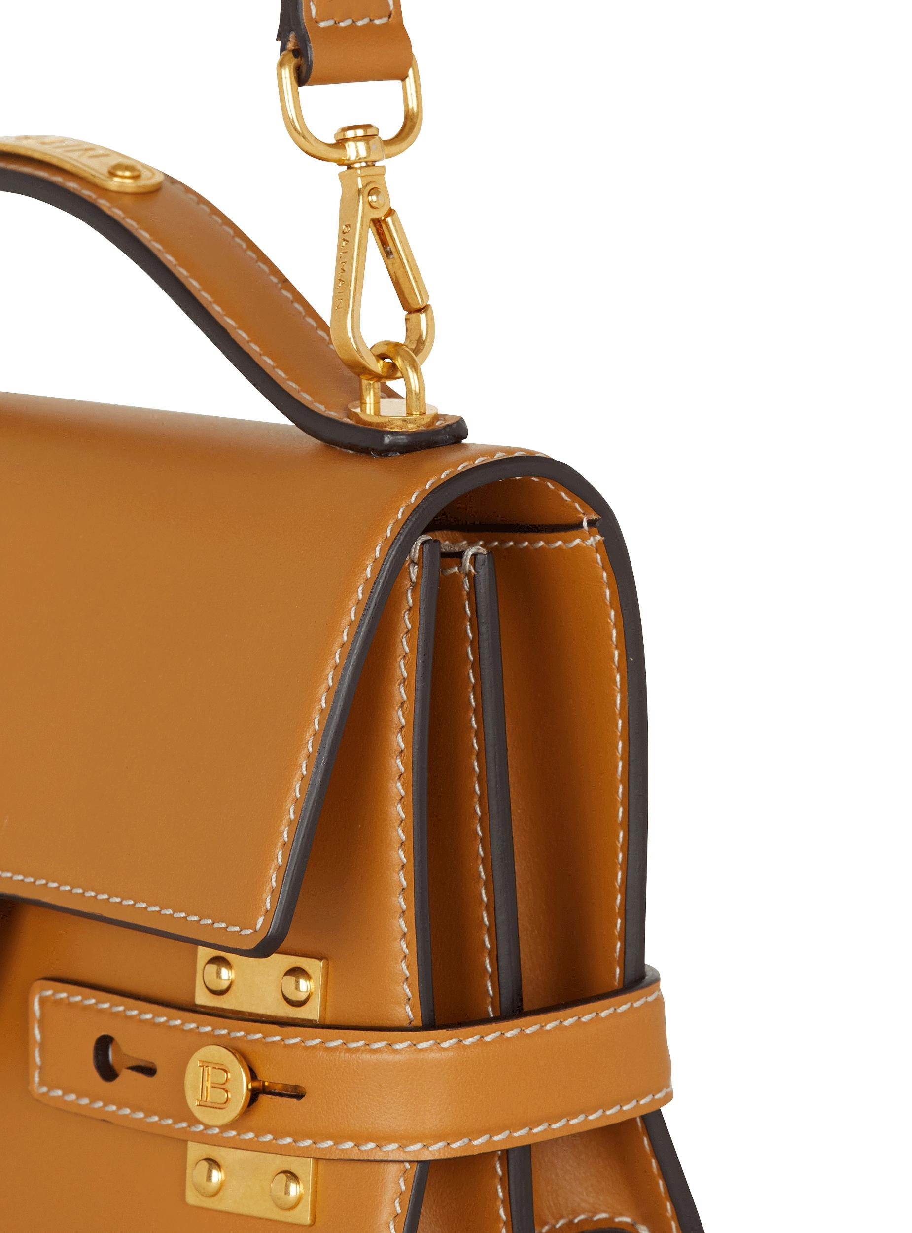 B-Buzz Shoulder 24 smooth calfskin bagThin removable leather shoulder strap and handleFlap closure with B-Twist quarter-turn claspEngraved golden metal Balmain B logo on the frontEngraved golden metal Balmain plaque on the handle2 compartments, 1 card slot and patch pocket insideGolden hardwareSmooth leather liningDimensions: 24 x 4 x 14.5 cm