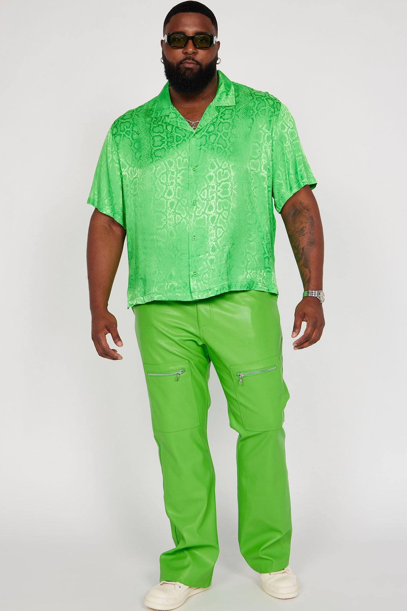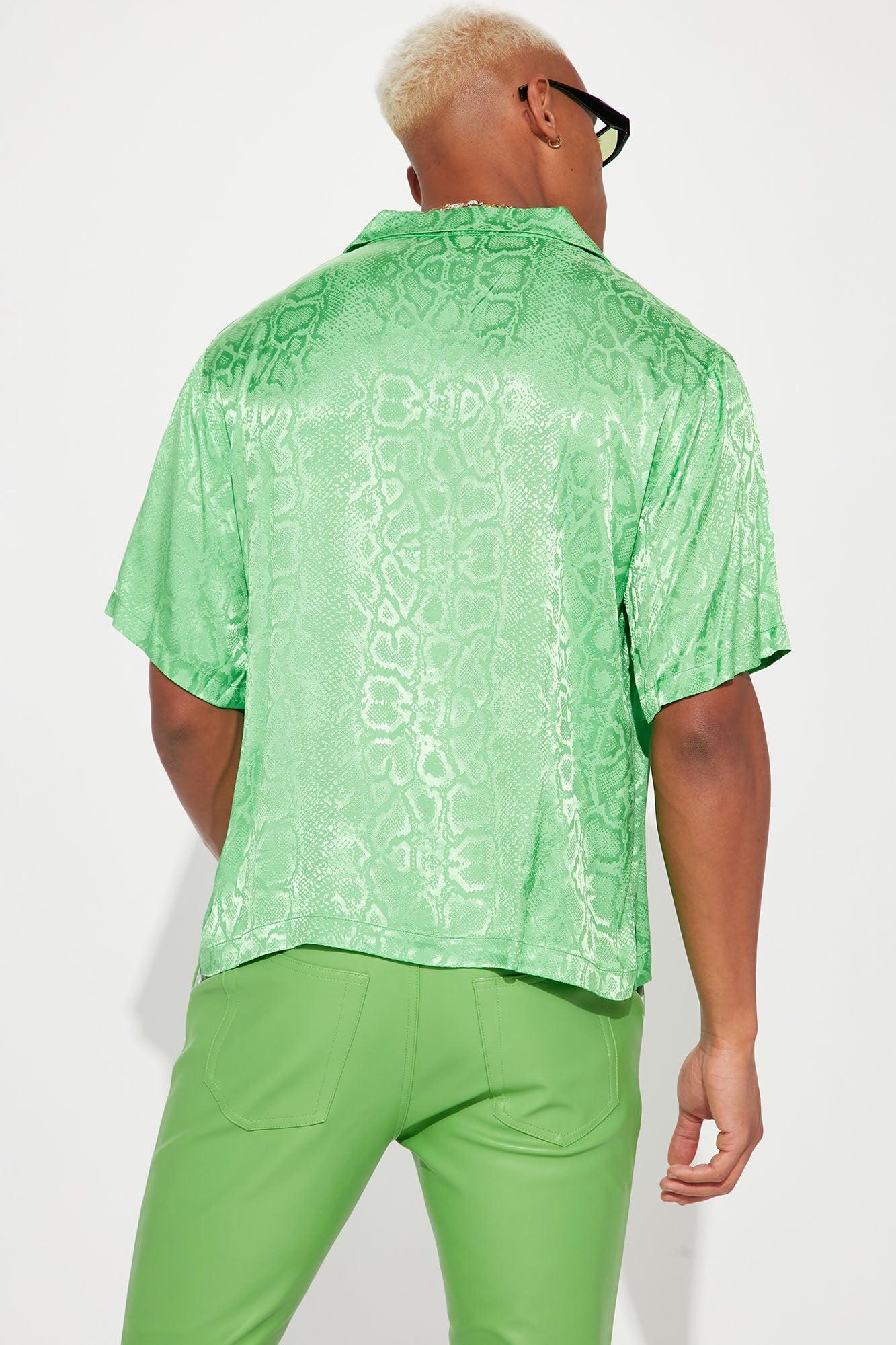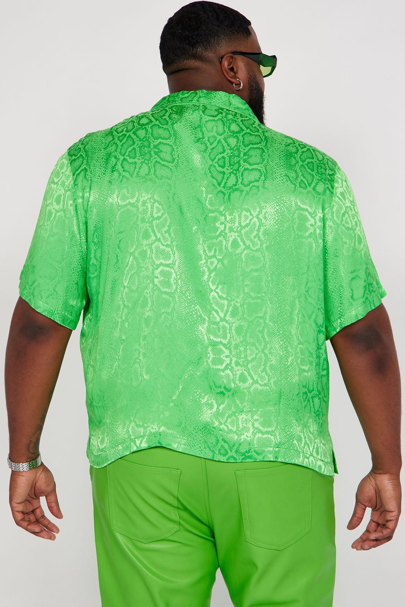 Model Height: 6'2 - Wearing Large Big & Tall: Height 6'5 - Wearing XXL Available In Green. Fold Down Collar Front Button Closure Short Sleeve Disclaimer: Pattern Placement May Vary 64% Viscose 36% Rayon Imported
