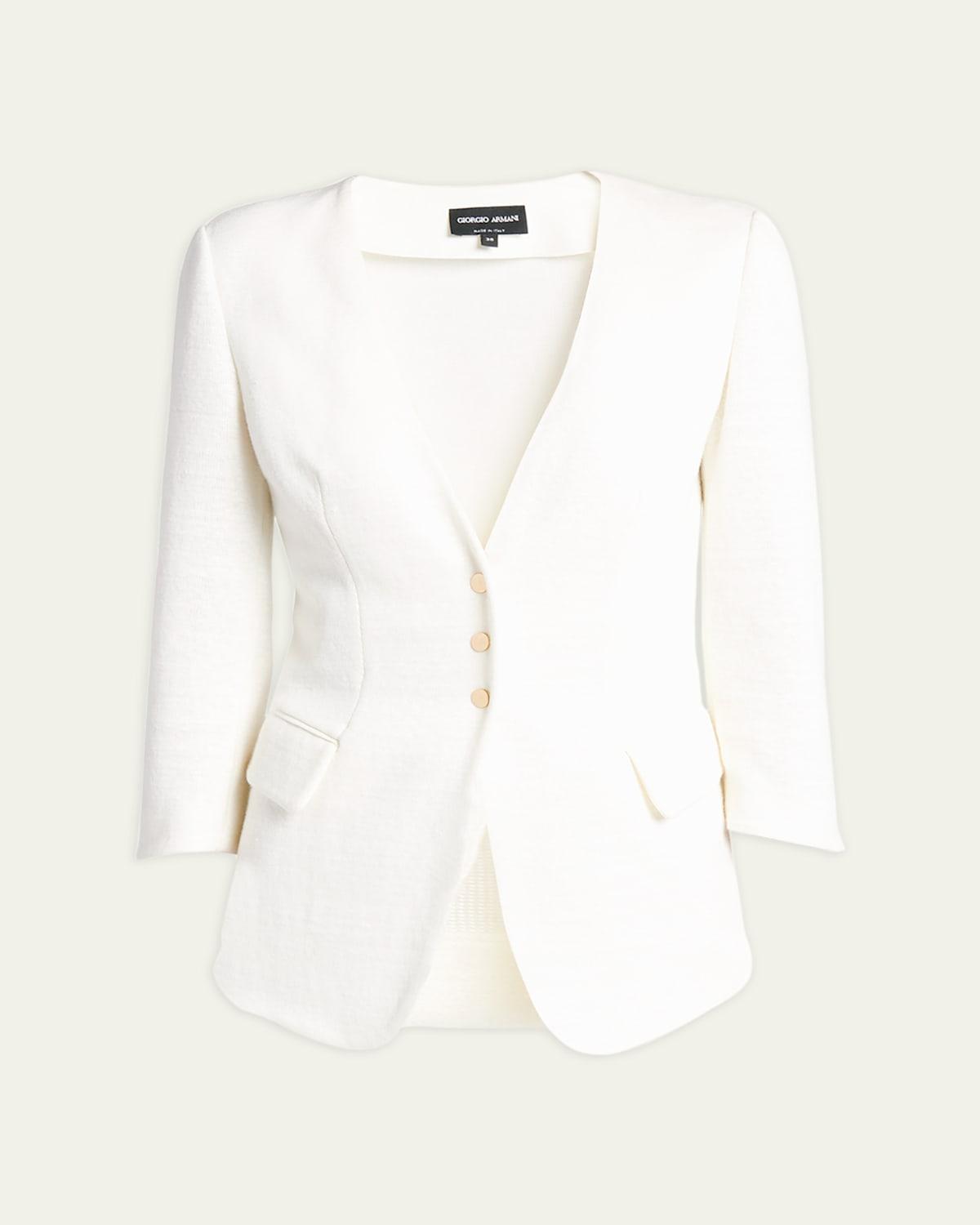 Snap Button Three-Quarter-Sleeve Viscose Blazer