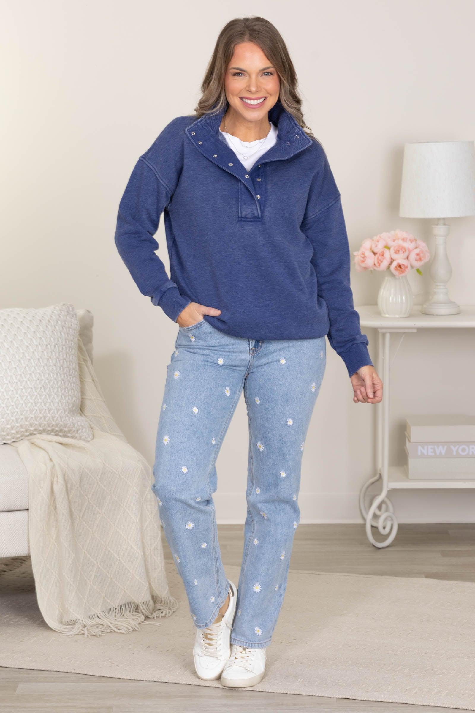 Meet our newest Filly Flair Signature Style! Super Soft & Cozy Sizes S-3XL Amazing Pigment Dyed Colors Layer Over Your Favorite Top For A Pop of Print or Color! Product Details Colors: Ocean Blue/ Navy/ Smoke Grey/ Vintage Black/ Latte/ Vintage Scarlett/ Vintage Purple/ Vintage Turquoise Print: Neckline: Snap Up Sleeve: Long Sleeves Hemline: Straight Brand: Filly Flair Size Guide: This sweatshirt is designed for a relaxed fit in your true size. If you are petite, you may be more comfortable sizing down one. Small: Size 2-4 Medium: Size 6-8 Large: Size 10-12 XL: Size 14-16 2XL: Size 18-20 3XL: Size 22-24 Erica is 5’7” and wearing her true size Small Garment Measurements: Small: Bust 44" Waist 40" Length 27" Medium: Bust 46" Waist 42" Length 28" Large: Bust 48" Waist 44" Length 29" XL: Bust 50" Waist 46" Length 30" 2XL: Bust 52" Waist 48" Length 31" 3XL: Bust 54" Waist 50" Length 32" How We Measure Garments: Garment Is Laid Flat On A Flat Surface Bust Measurement Is From Armpit To Armpit On Front & Back Waist Measurement Is Across the Waistline On Front & Back Length Measurement Is From The Natural Shoulder Point To The Bottom Hem Material and Care: We Recommend a Machine Wash Cold Cycle Before Wearing 60% Cotton 40% Polyester Machine Wash Cold Tumble Dry Low