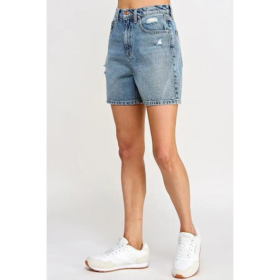 Cool, carefree, and made for movement. These high rise baggy shorts bring laid-back style to your warm-weather lineup. Finished in a light vintage wash with just a touch of distressing, they offer an easy, worn-in feel with an on-trend silhouette. Style them with anything from cropped tanks to oversized shirts for instant summer ease.