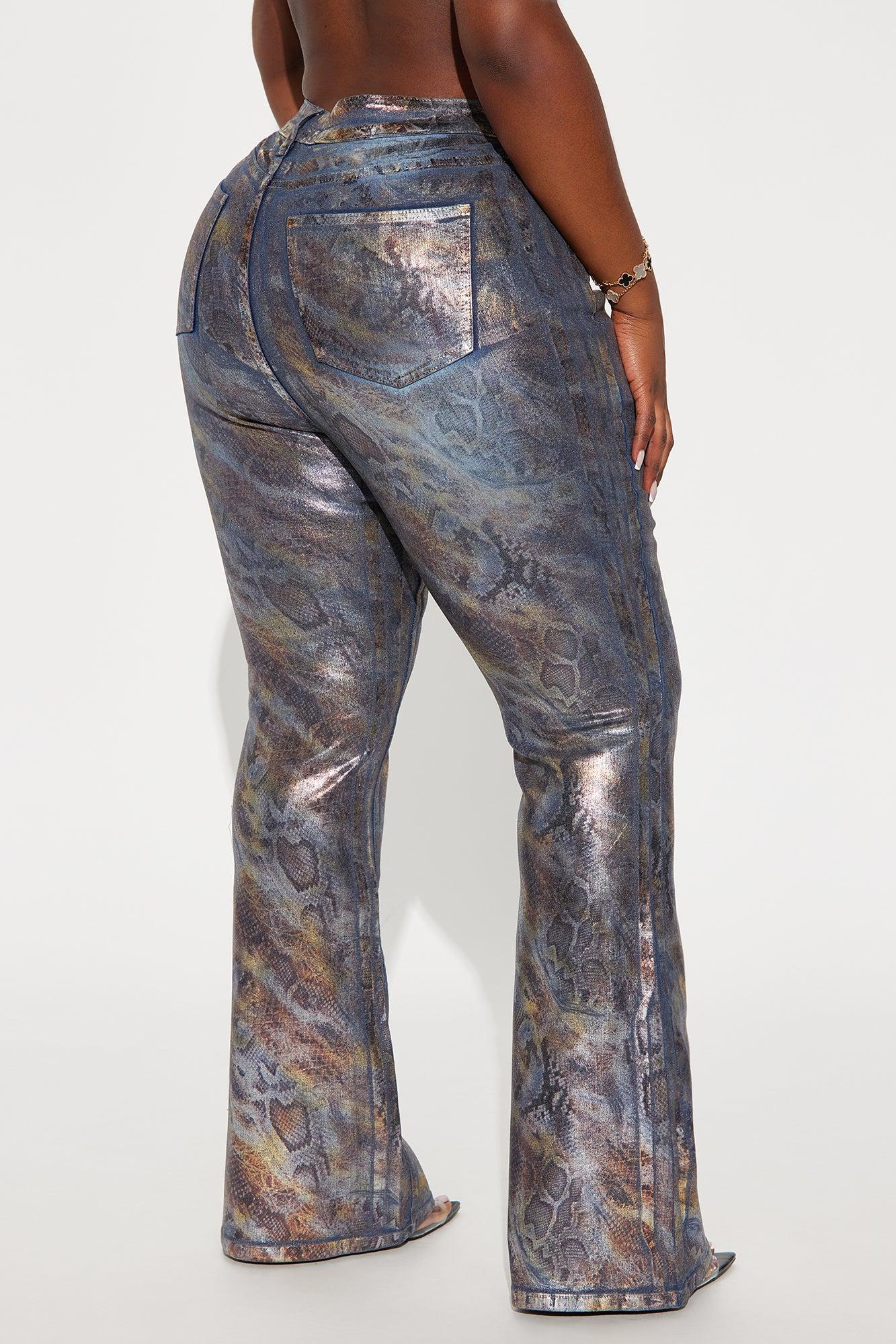 Available In Dark Wash. Flare Jeans Pair With Sneaky Games Animal Print Foil Denim Vest 5 Pocket Animal Print Foil 11" High Rise 34" Inseam Medium Stretch Disclaimer: Due To The Specialized Wash And Foil Coating Process, Each Garment Is Unique. 68% Cotton 26% Polyester 4% Rayon 2% Spandex Imported California Proposition 65WARNING: Cancer and Reproductive Harm - www.P65Warnings.ca.gov.
