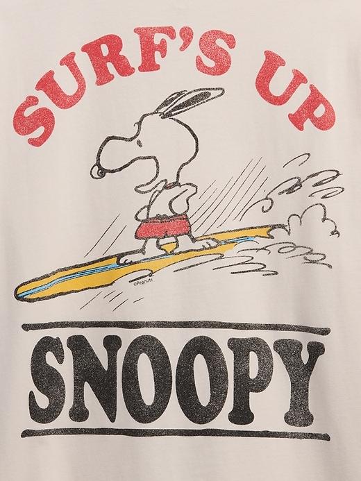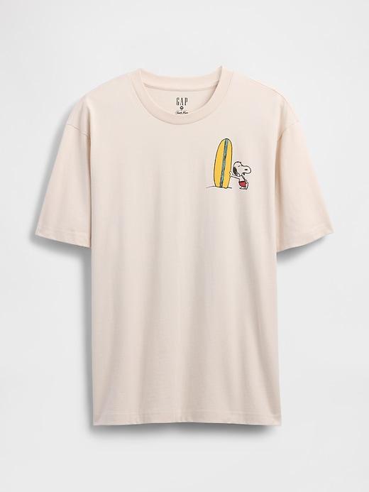 Soft cotton jersey graphic T-shirt. Crewneck. Short sleeves. Peanuts Snoopy surfer graphics at front and back. This product was made in a factory that invests in gender equality and women’s empowerment. Through RISE (Reimagining Industry to Support Equality) and Gap Inc.’s program P.A.C.E. (Personal Advancement & Career Enhancement), we support people who make our clothes to build the skills, knowledge, confidence, and resilience needed to advance in work and life. Learn more here. #797679