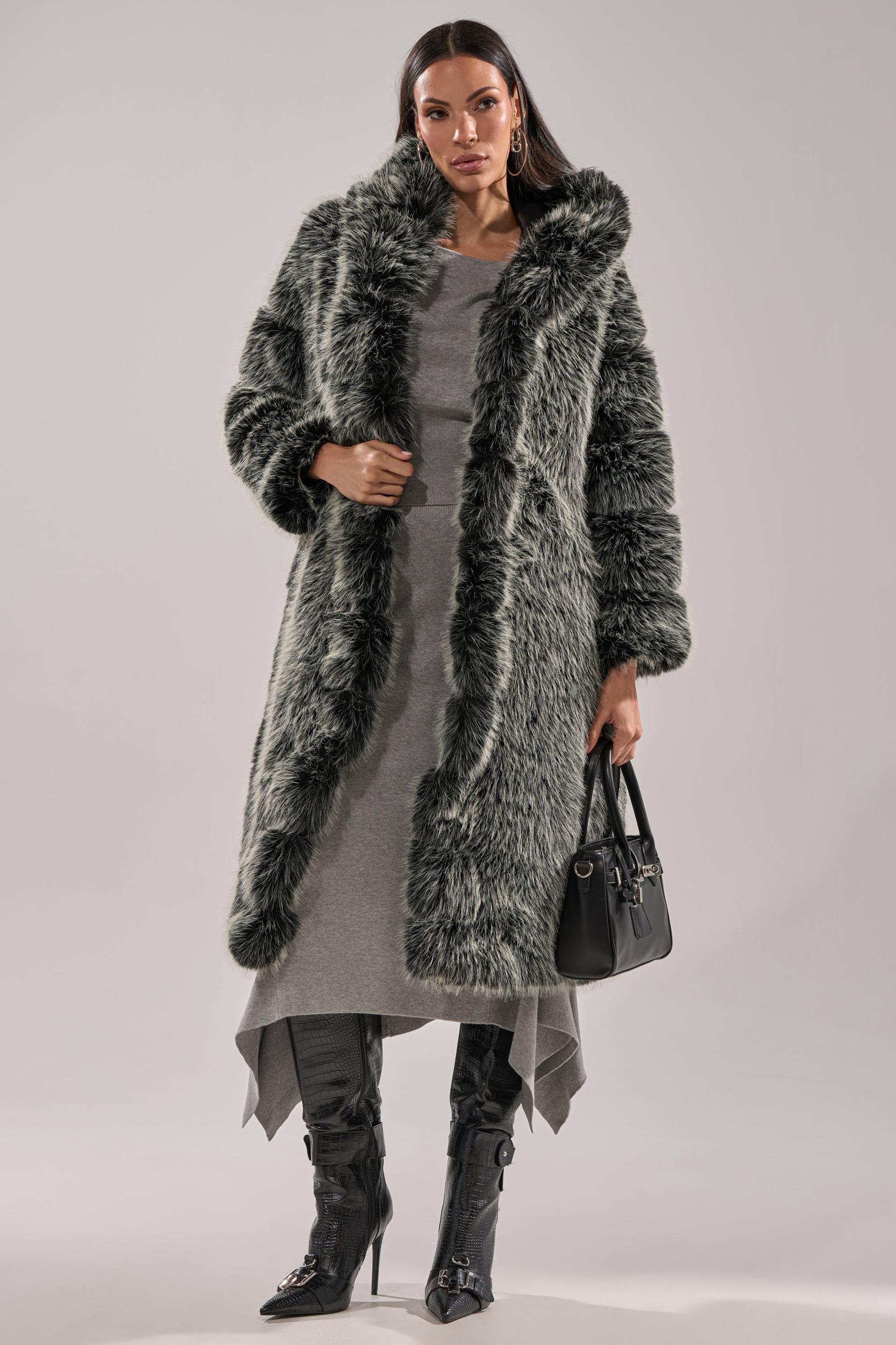 Catch ya on the slopes! The AKIRA Label Snow Bunny Hooded Faux Fur Coat is crafted from divinely plush faux fur and features a paneled construction, an attached hood, long sleeves, dual waist pockets, a sleek inner lining, and concealed front hook-and-eye closures. Complete with a lavish, longline silhouette. Layer over a cable knit sweater, flared jeans, and stiletto booties for a finished look. - Faux Fur Shell: 100% Polyester, Lining: 100% Polyester- Dry Clean Only- No Stretch- Imported (all measurements approximate from size S/M)- 44” Shoulder to Hem- 18” Shoulder to Shoulder- 22” Sleeves- Model is 5’11” and is wearing size S/MProduct ID: 1062554 (all measurements approximate from size 1X/2X)- 46” Shoulder to Hem- 20” Shoulder to Shoulder- 24” SleevesProduct ID: 1062556